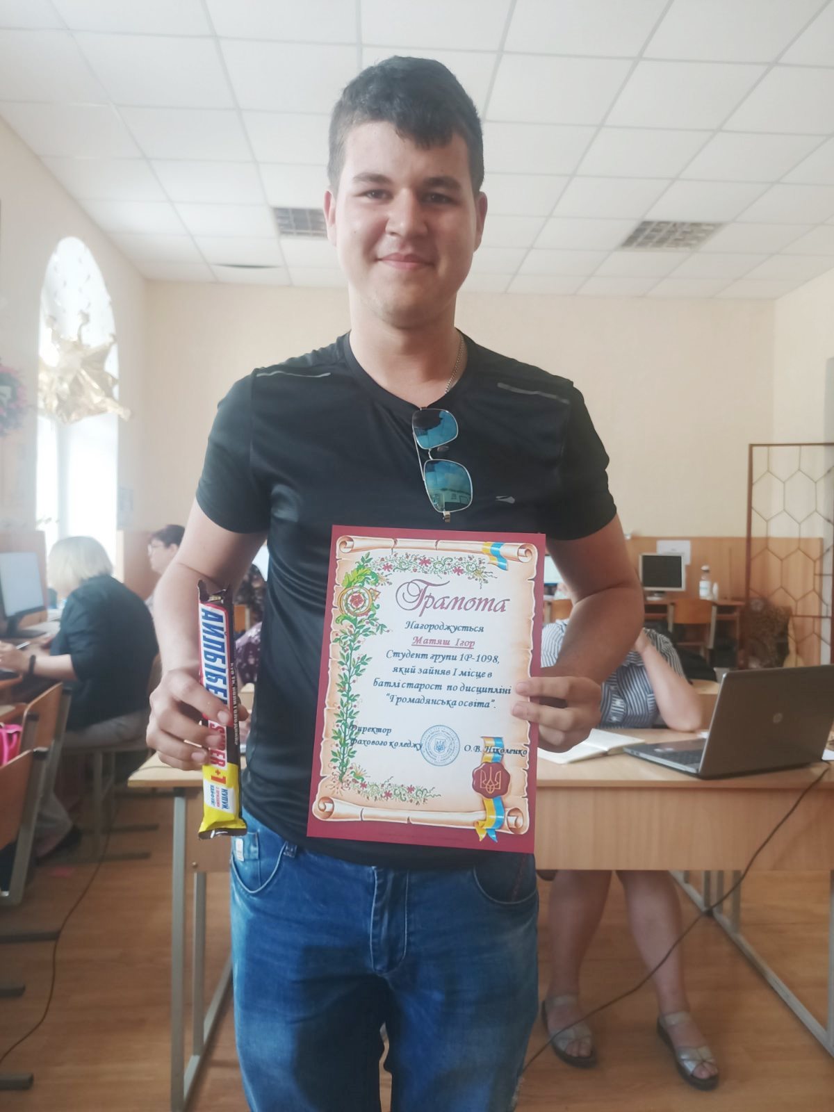 Студента групи 1Р-1098, супер - переможця в батлі старост "Громадянська освіта. Перегони".