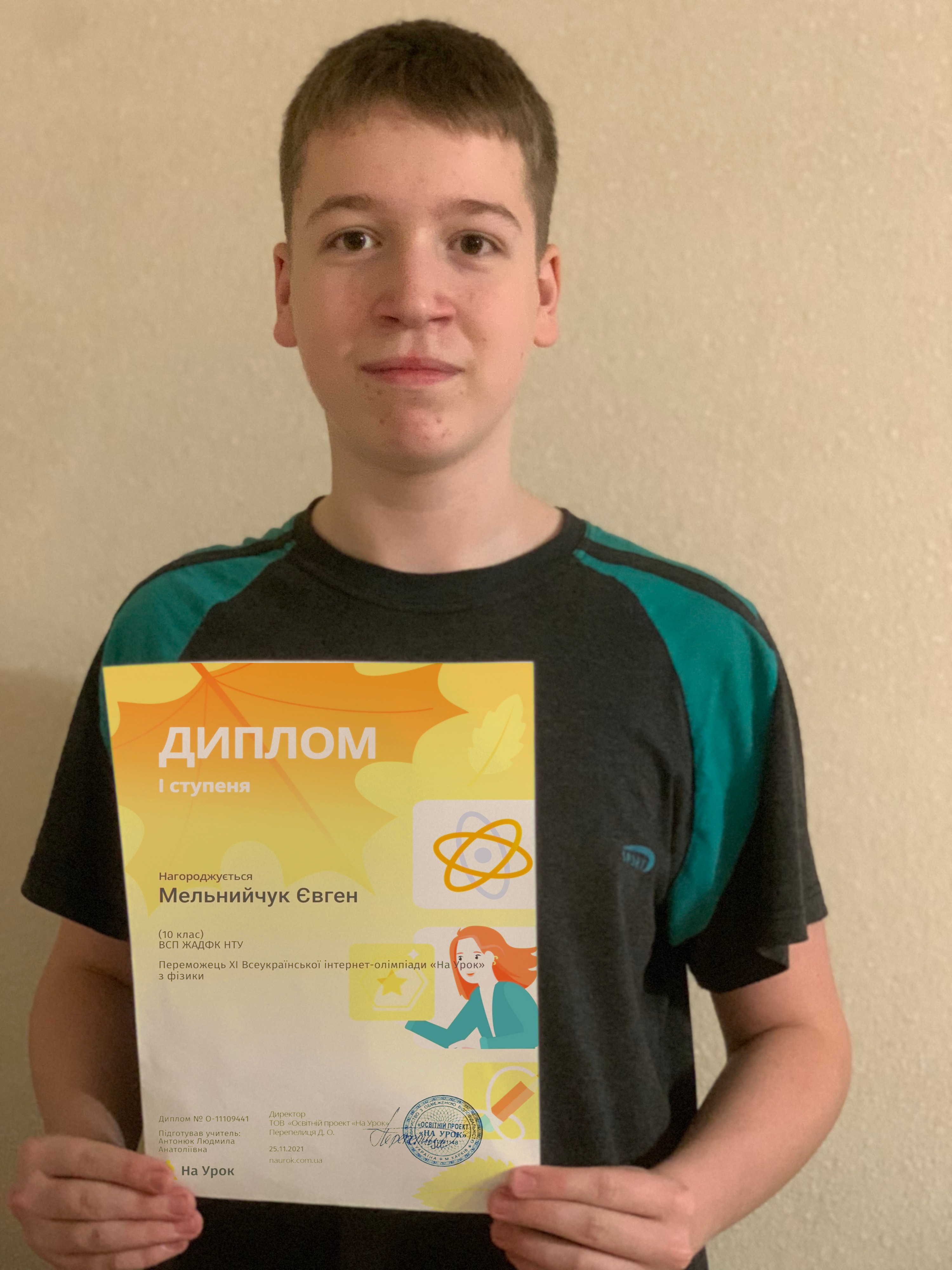 Диплом І ступеня з фізики отримав Мельнийчук Євген (гр. 1Д-1108)