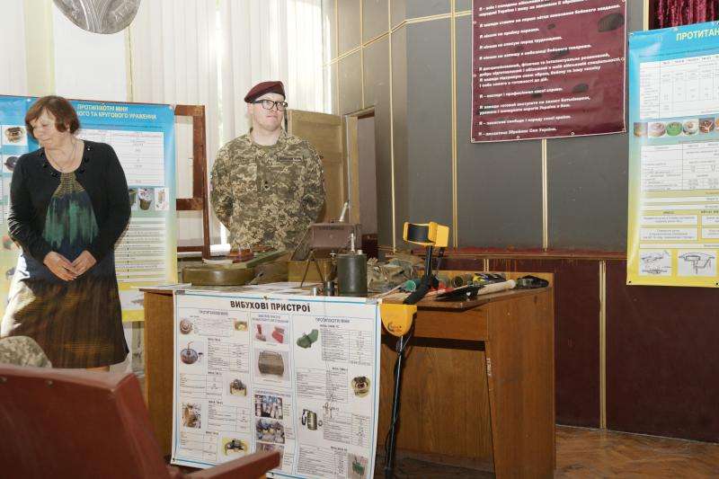 Розповіли про міни та загрозу, яку вони несуть. Військовий медик продемонстрував заходи першої домедичної допомоги.