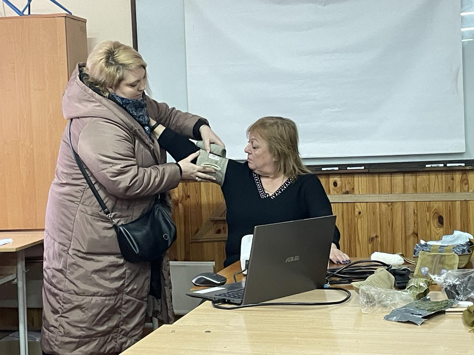продемонстровано ПРАКТИЧНЕ ЗАНЯТТЯ щодо надання домедичної допомоги ІЗ СЛУХАЧАМИ, ЯКІ МАЛИ МОЖЛИВІСТЬ самостійно ВИКОРИСТАТИ СТАНДАРТНІ ТА ПІДРУЧНІ ЗАСОБИ ЗУПИНКИ КРОВОТЕЧ, А ТАКОЖ присутні БУЛИ ОЗНАЙОМЛЕНІ З ДОМЕДИЧНОЮ ДОПОМОГОЮ ПРИ ІНШИХ НЕВІДКЛАДНИХ СТАНАХ.
