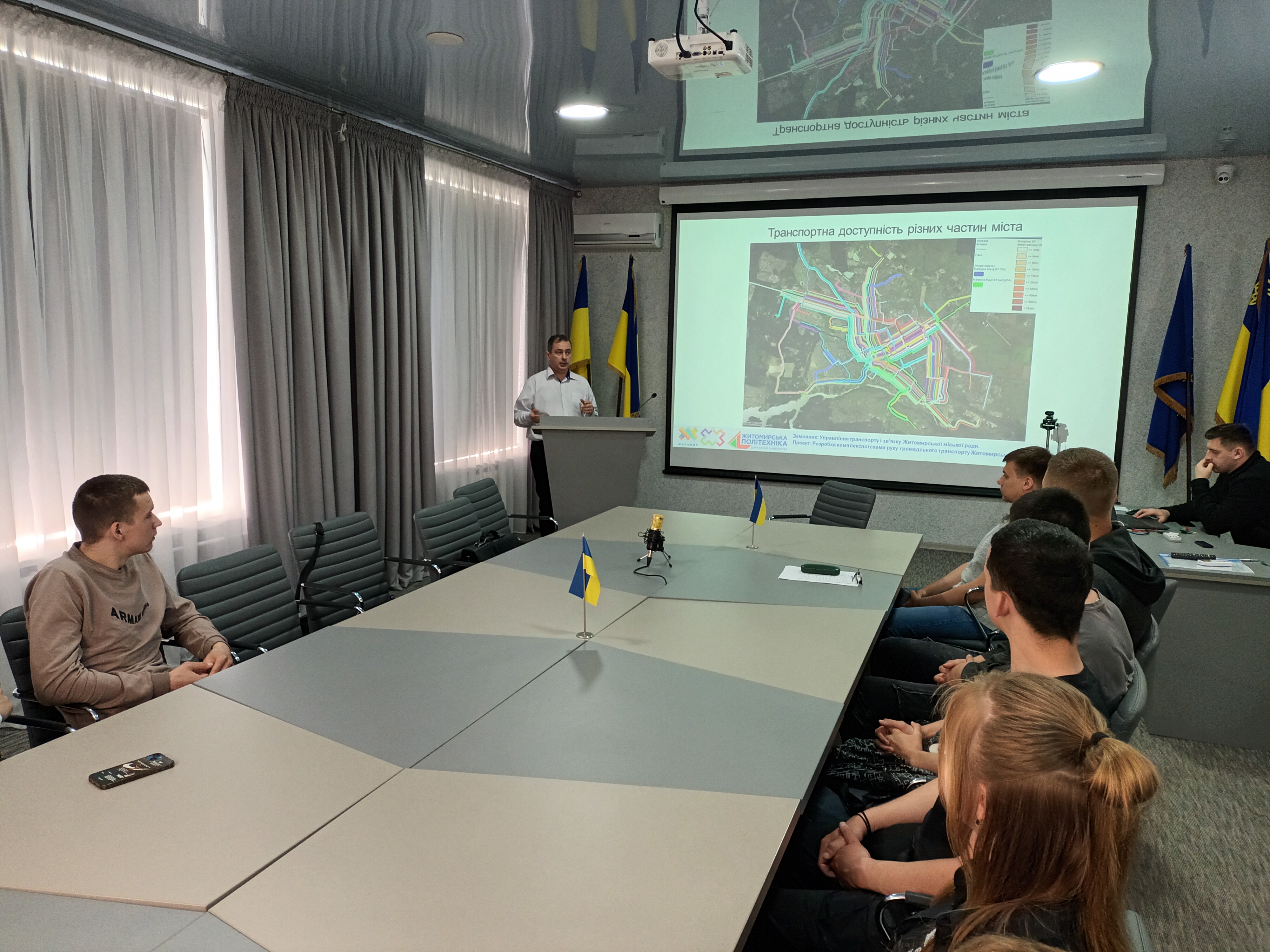 2 травня 2024 року у Державному університеті «Житомирська політехніка» науково-педагогічними працівниками кафедри автомобілів і транспортних технологій кандидатами технічних наук, доцентами Володимиром Шумляківським та Дмитром Бегерським для студентів гр.3ТТ-1107, які навчаються за освітньо-професійною програмою «Організація та регулювання дорожнього руху» були прочитані тематичні навчальні лекції з «Організації дорожнього руху». Студенти коледжу отримали можливість детальніше ознайомитись із сучасними підходами до модернізації маршрутної мережі м. Житомира, моделюванням дорожнього руху, що відкриваються завдяки сучасним технологіям.