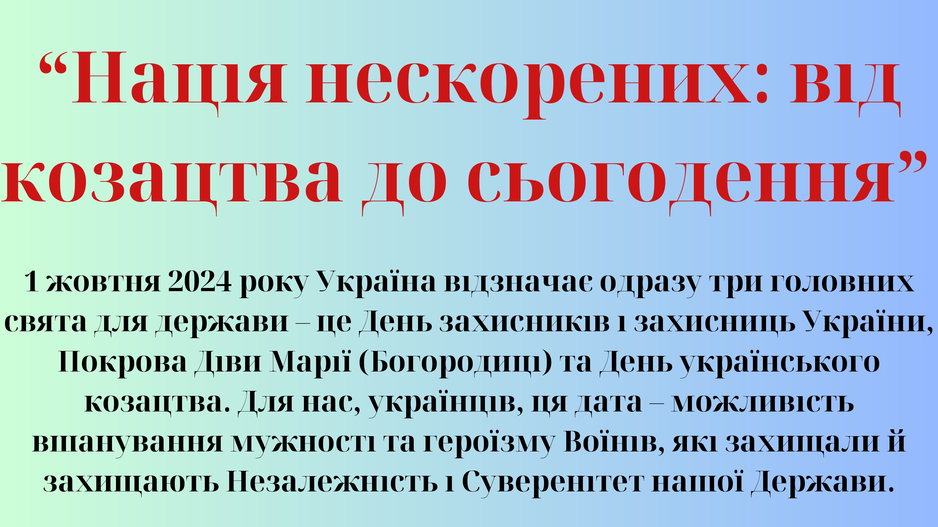 “НАЦІЯ НЕСКОРЕНИХ: ВІД КОЗАЦТВА ДО СЬОГОДЕННЯ”