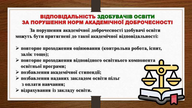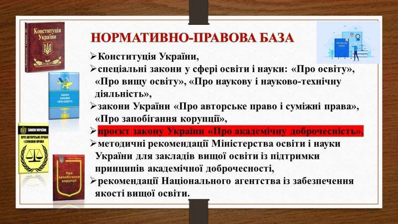 Під час заходу детально зупинились на видах порушень академічної доброчесності, обговорили законодавче підґрунтя, з’ясували, чому академічна доброчесність набуває все більшого значення в сучасній освіті.
