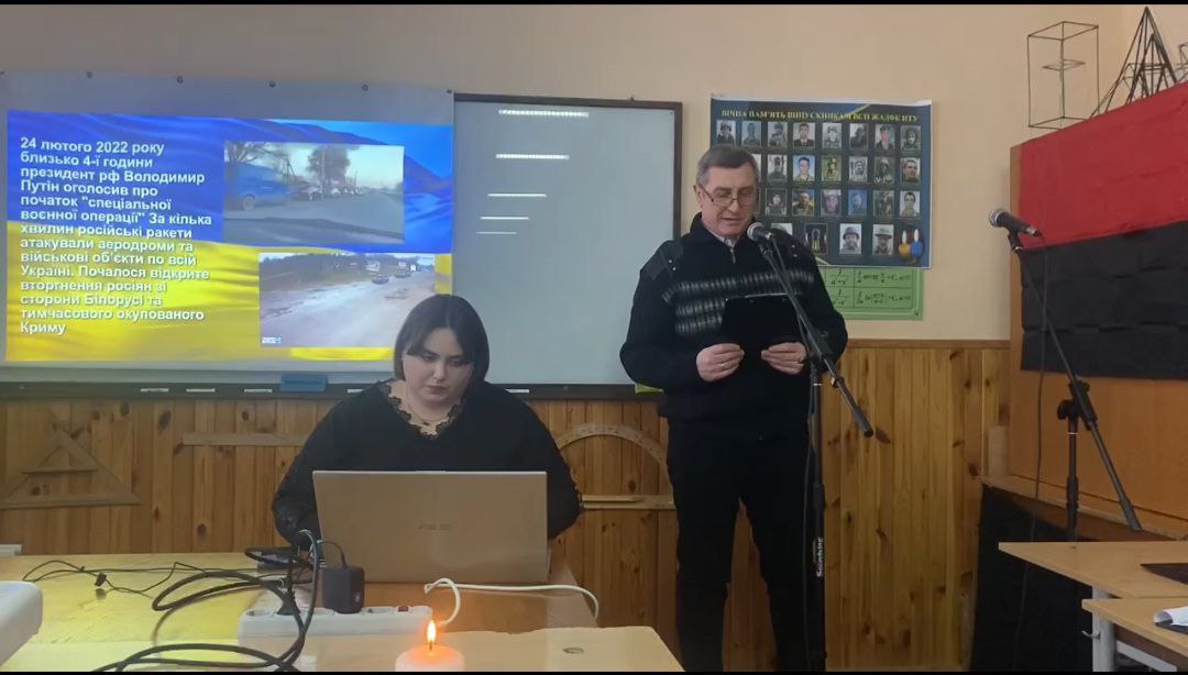 18.02.2025 року викладачі коледжу Ірина Галабурда та Володимир Катерещук разом зі студентками групи 2ТТ-1137 провели захід до Дня пам’яті Героїв Небесної Сотні та загиблих у війні проти Росії для груп 1Д-1153, 1М-1156, 2Р-1143.