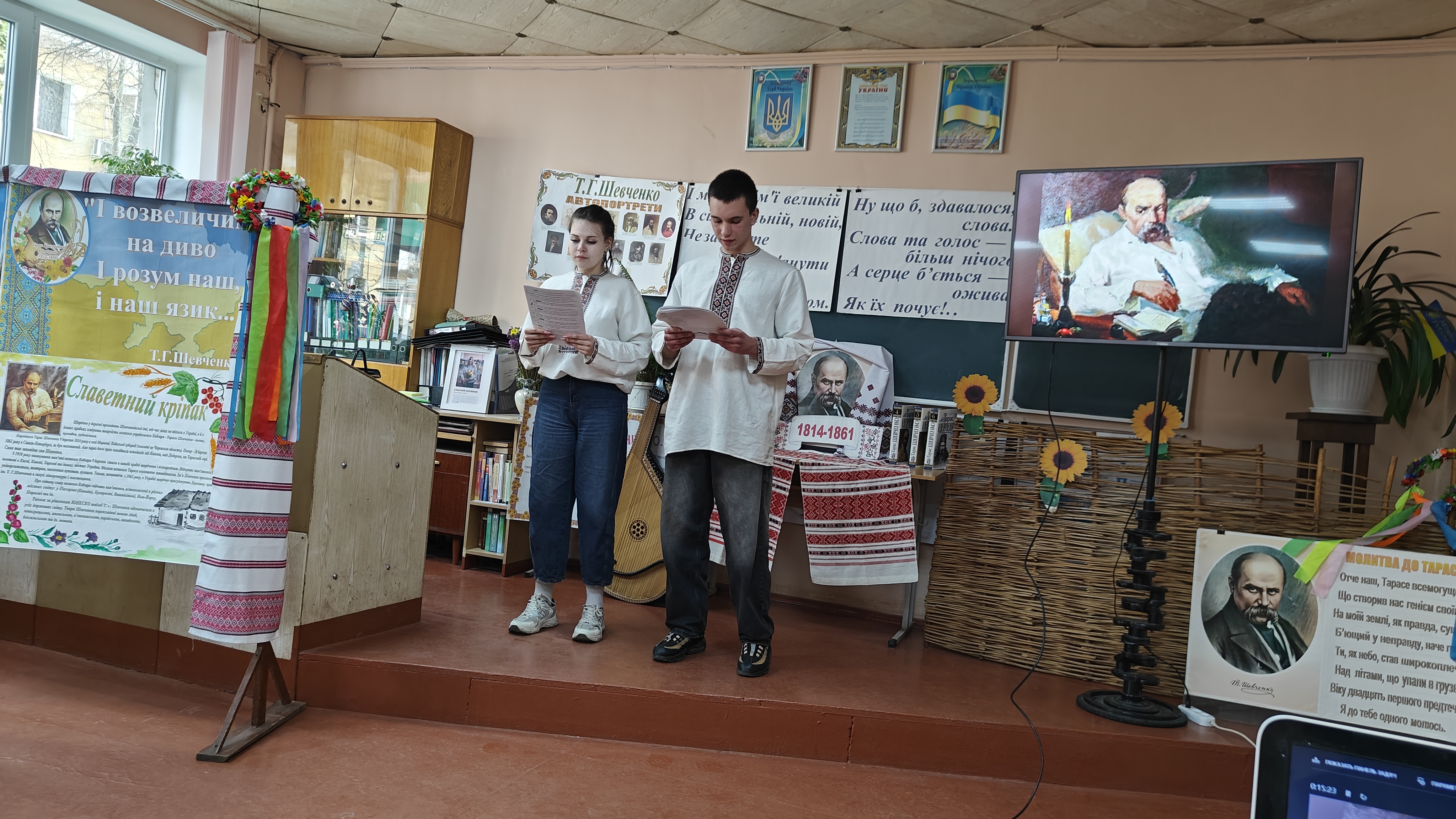 11 березня викладачка Наталія ГРИНЕВИЧ разом зі студентами груп 2ТТ-1137 та 1ТТ-1151-1ІСТ-112 провела позакласний захід «Пророчий голос Кобзаря», присвячений вшануванню пам’яті Т.Г.Шевченка. Його називають нашим пророком, Великим Кобзарем і українським генієм.