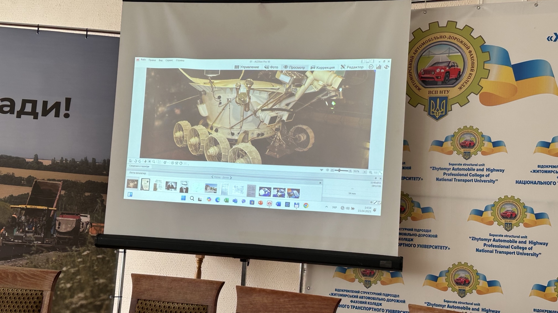 Тема лекції була певною мірою близькою для майбутніх фахівців з автомобільної техніки, адже йшлося про перший космічний «автомобіль» -- дистанційно керований самохідний апарат для дослідження поверхні місяця («Луноход»). У 1970 та 1973 роках до Місяця було доставлено два «Луноходи», які виконували програму з дослідження цього супутника Землі.
