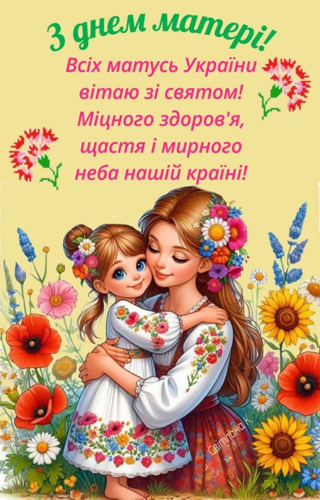 Кожного року, в другу неділю травня, ми святкуємо день найдорожчої людини в світі – Мами. Мати – найрідніша і найближча кожному з нас людина. Вона дарує нам життя. Вона вчить нас людських правил, оживляє наш розум, вкладає у наші вуста добрі слова. Образ матері опоетизований у віршах, оспіваний у музичних творах, прославлений у казках і легендах. Перше слово, яке дитина вимовляє, це слово «мама». Мама – наша берегиня.