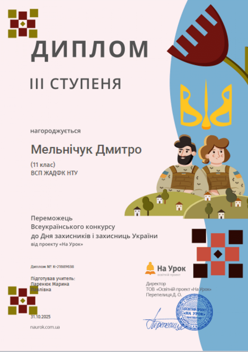 - Мельнічук Дмитро (2ІСТ-1152) - Диплом III ступеня