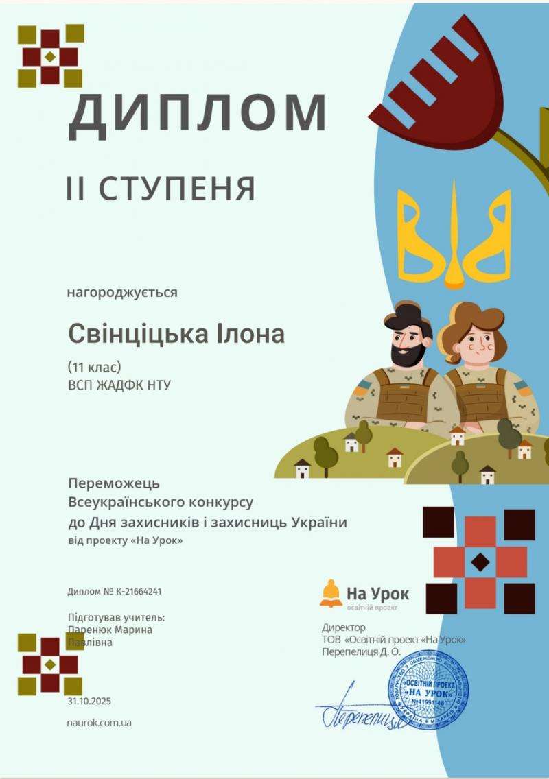 - Свінціцька Ілона (2ТТ-1151) - Диплом II ступеня