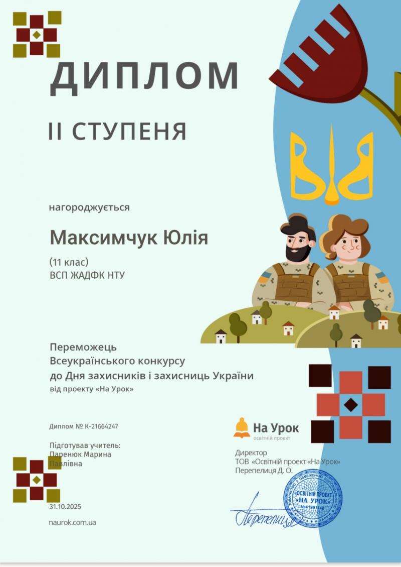 - Максимчук Юлія (2ТТ-1151) - Диплом II ступеня