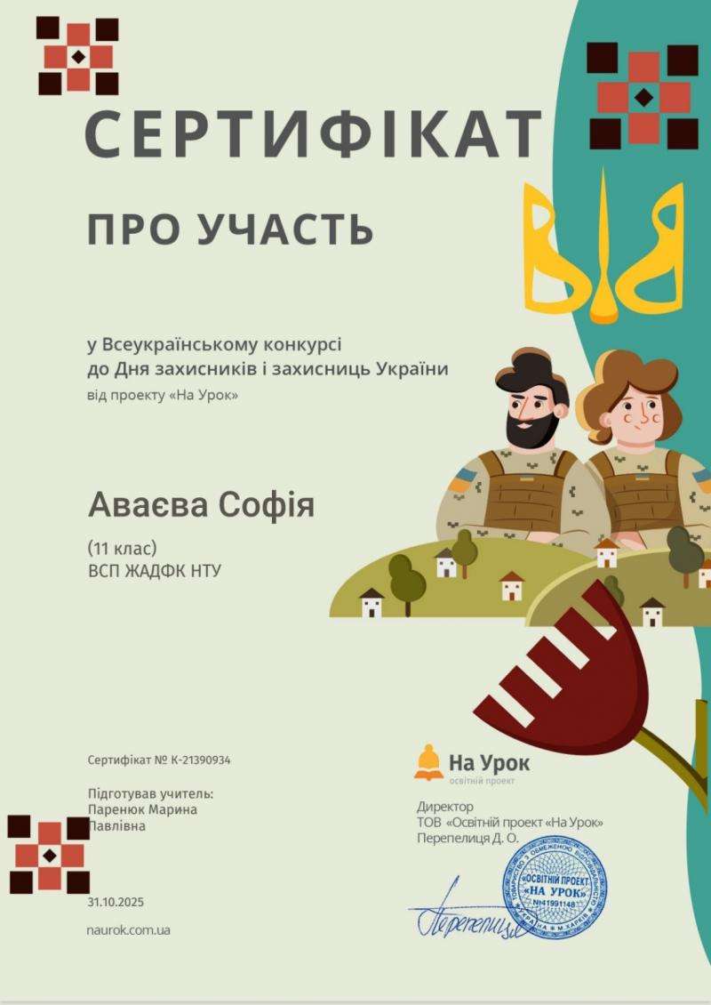 - Аваєва Софія (2Р-1158) - Сертифікат учасника
