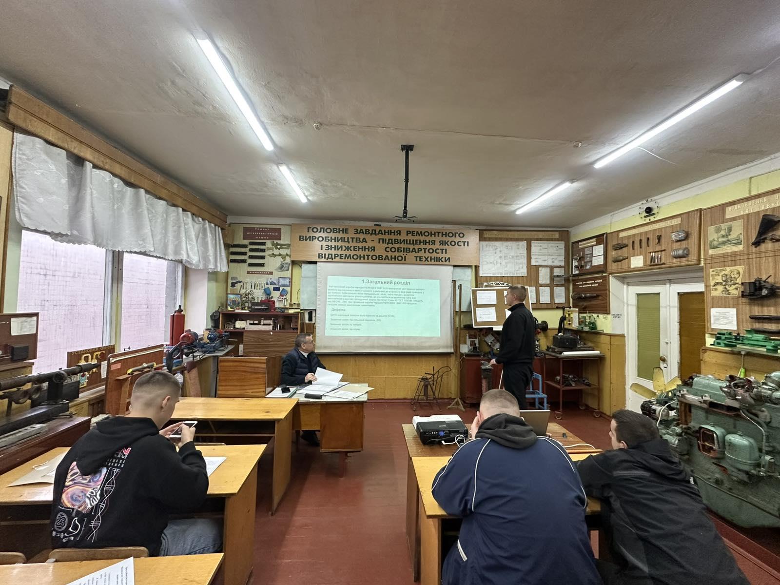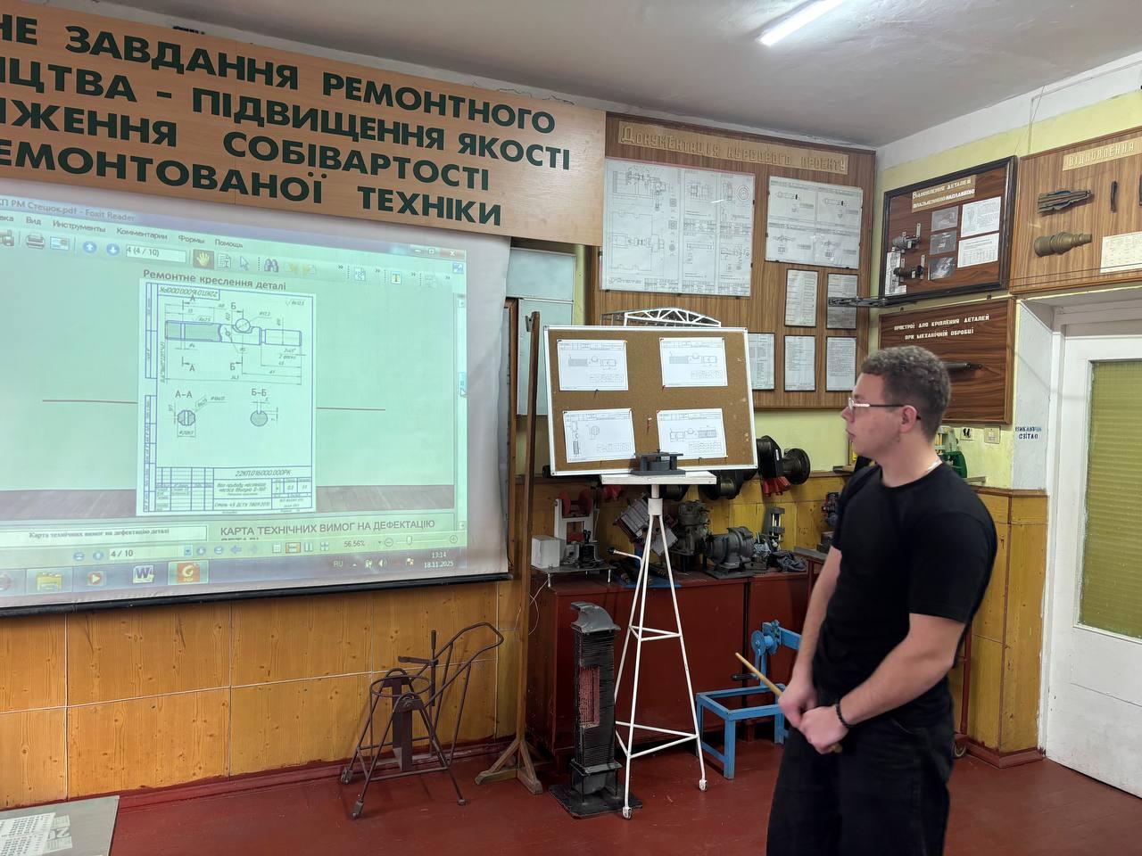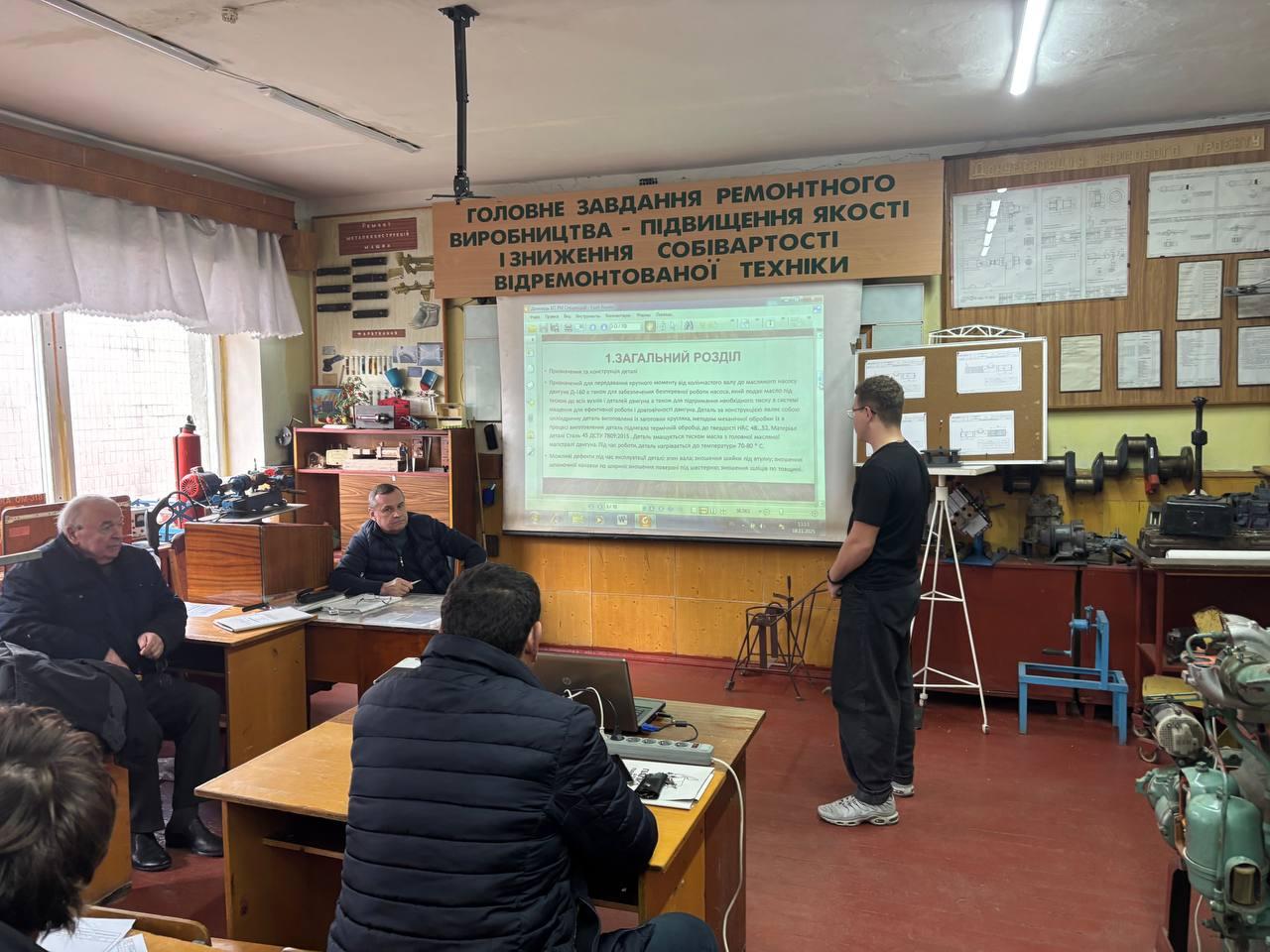 17 листопада 2025 року почався захист курсових проєктів з освітнього компоненту «Ремонт машин» для студентів спеціальності 133 Галузеве машинобудування (викл. Кузьмінський В.З.). Свої роботи представляли на захист студенти групи 4М-1127. Виконання курсового проєкту є підсумком вивчення освітнього компонента. Мета курсового проєкту – систематизувати, закріпити та розширити теоретичні знання, поєднати їх з практичними матеріалами, а також розробити ефективну технологію ремонту конкретної деталі, яка дозволить відновити її функціональні характеристики до початкових показників з мінімальними витратами ресурсів і часу.