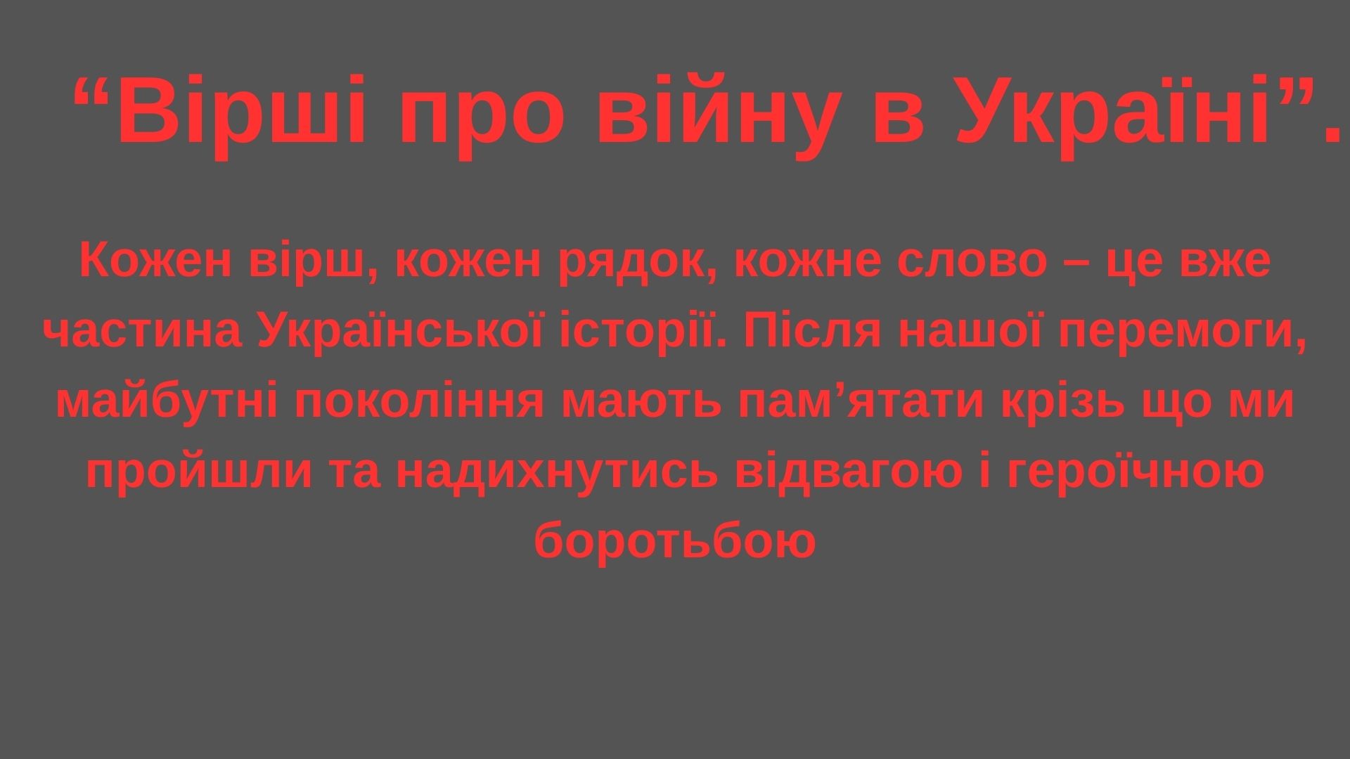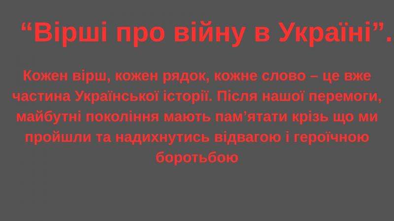 Представлена віртуальна виставка про поезію в умовах війни. Слово часто лікує і допомагає, а іноді й рятує. Вчасно і доречно підібрані вірші мають дивовижну силу: вони здатні притлумити душевний біль, надати сили, розпалити, здавалося б, згасле бажання жити і творити.