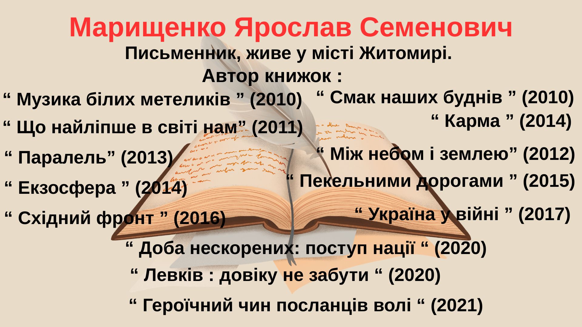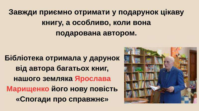 Наша бібліотека отримала у подарунок книгу від нашого земляка Ярослава Марищенко. Книга обов’язково стане частинкою фонду та знайде свого читача.