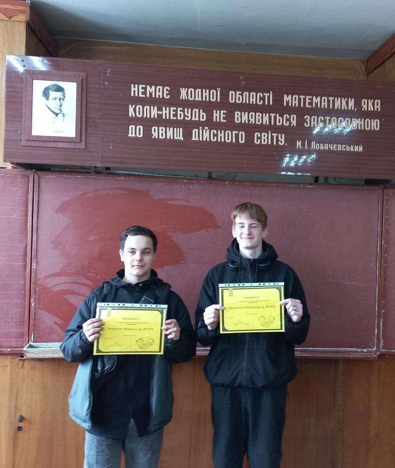 Студенти груп 1ІСТ-1165, 1Д-1166, 1Р-1171, 1Р-1172 випробували свої сили в інтелектуальній онлайн-вікторині «Математичний калейдоскоп». Змагання відбувалася на інтеренет-платформі, що дозволило залучити одночасно велику кількість гравців. Першокурсники пройшли крізь справжній «калейдоскоп» завдань, що вимагало не лише знання формул, а й нестандартного мислення. Формат особистої першості диктував безкомпромісні умови: фіксувалися правильність відповідей та час, витрачений на виконання завдань.