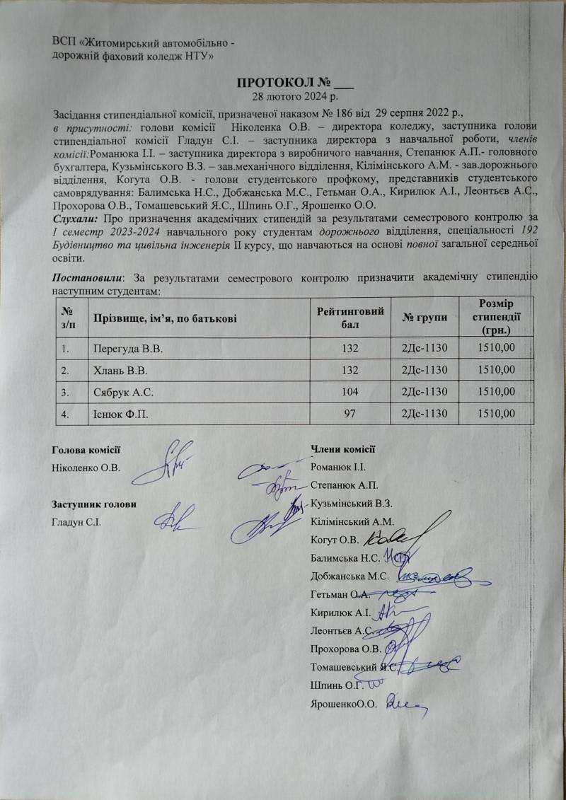 Результати рейтингового контролю та рішення стипендіальної комісії 2023-2024 н.р.