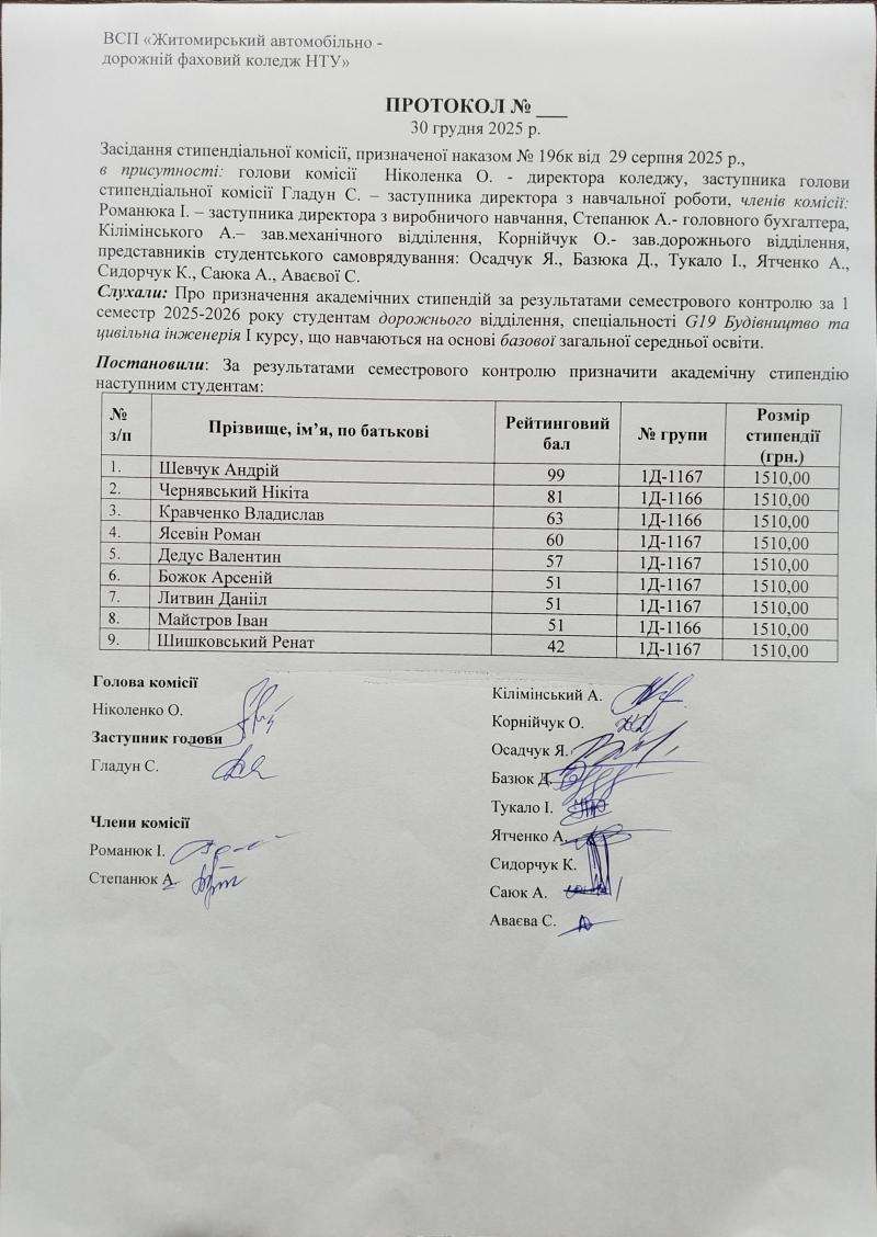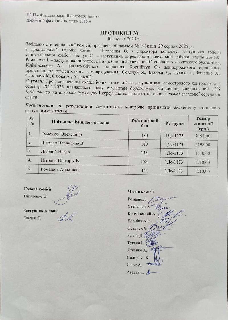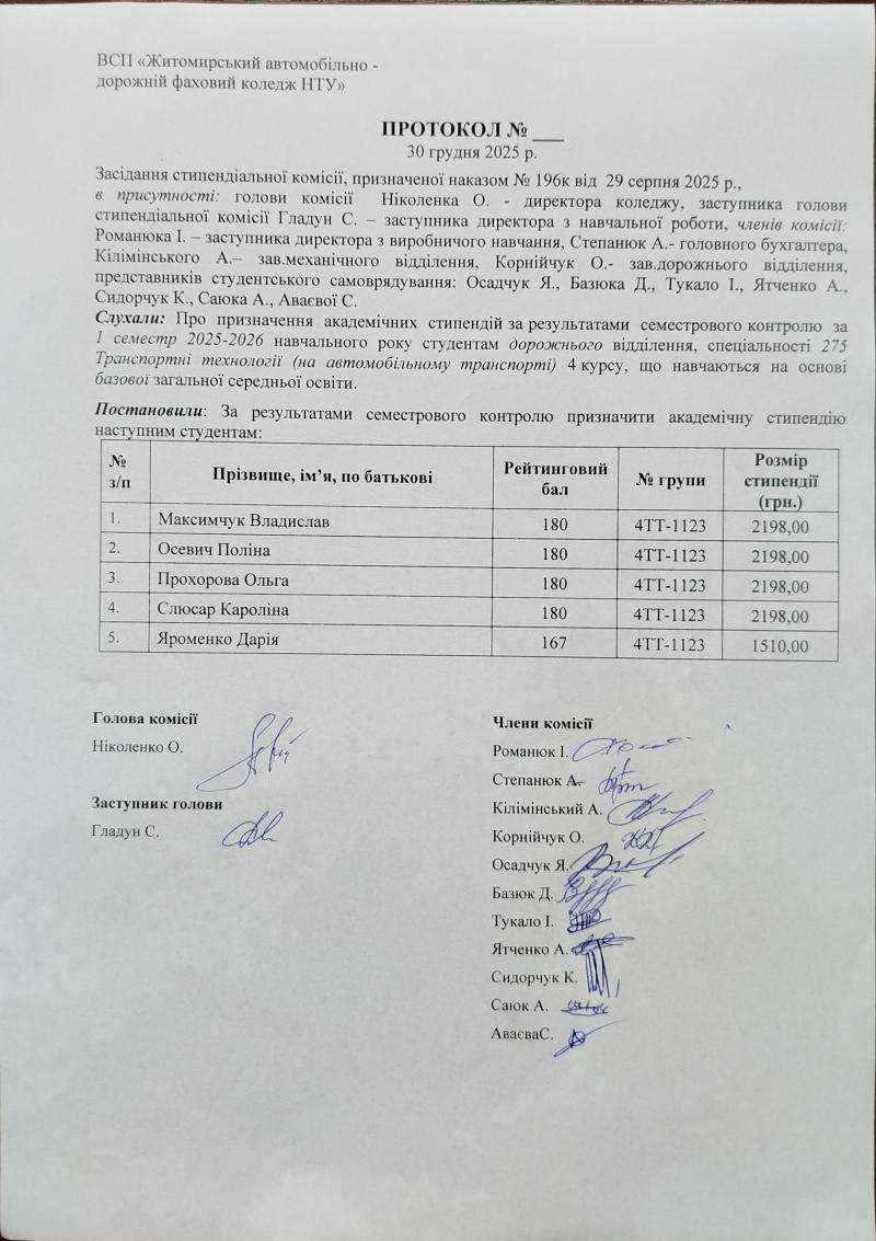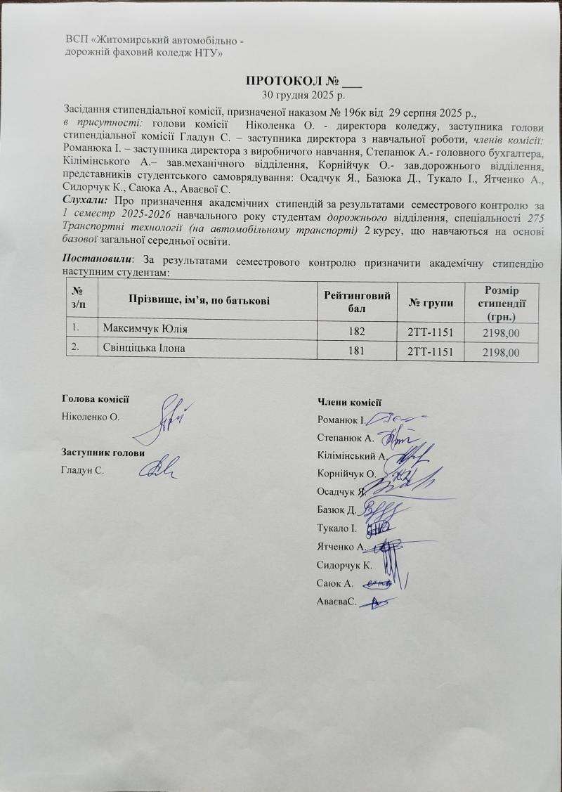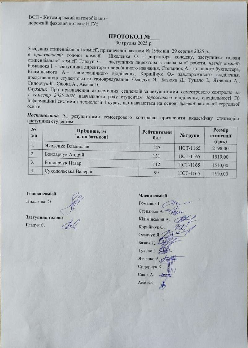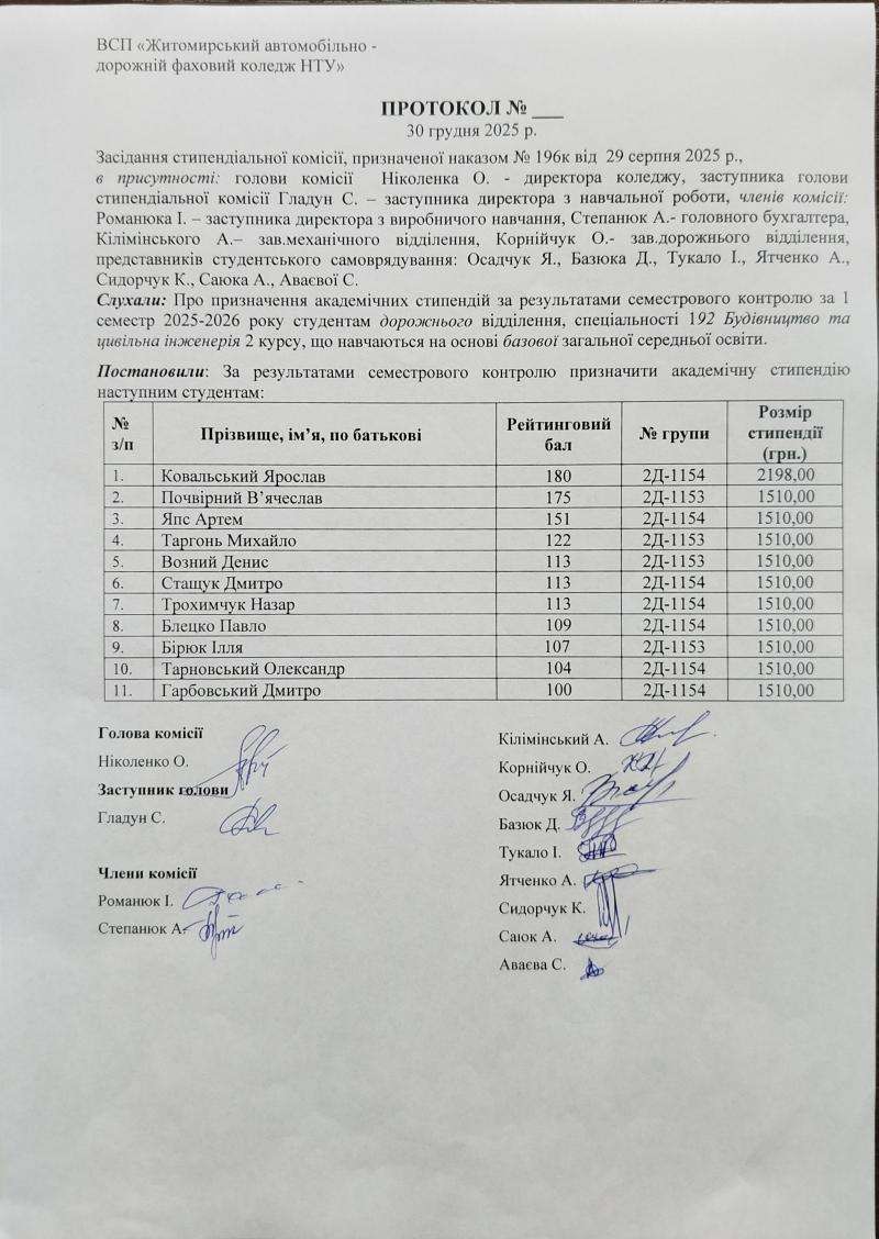 Результати рейтингового контролю та рішення стипендіальної комісії 2025-2026 н.р.