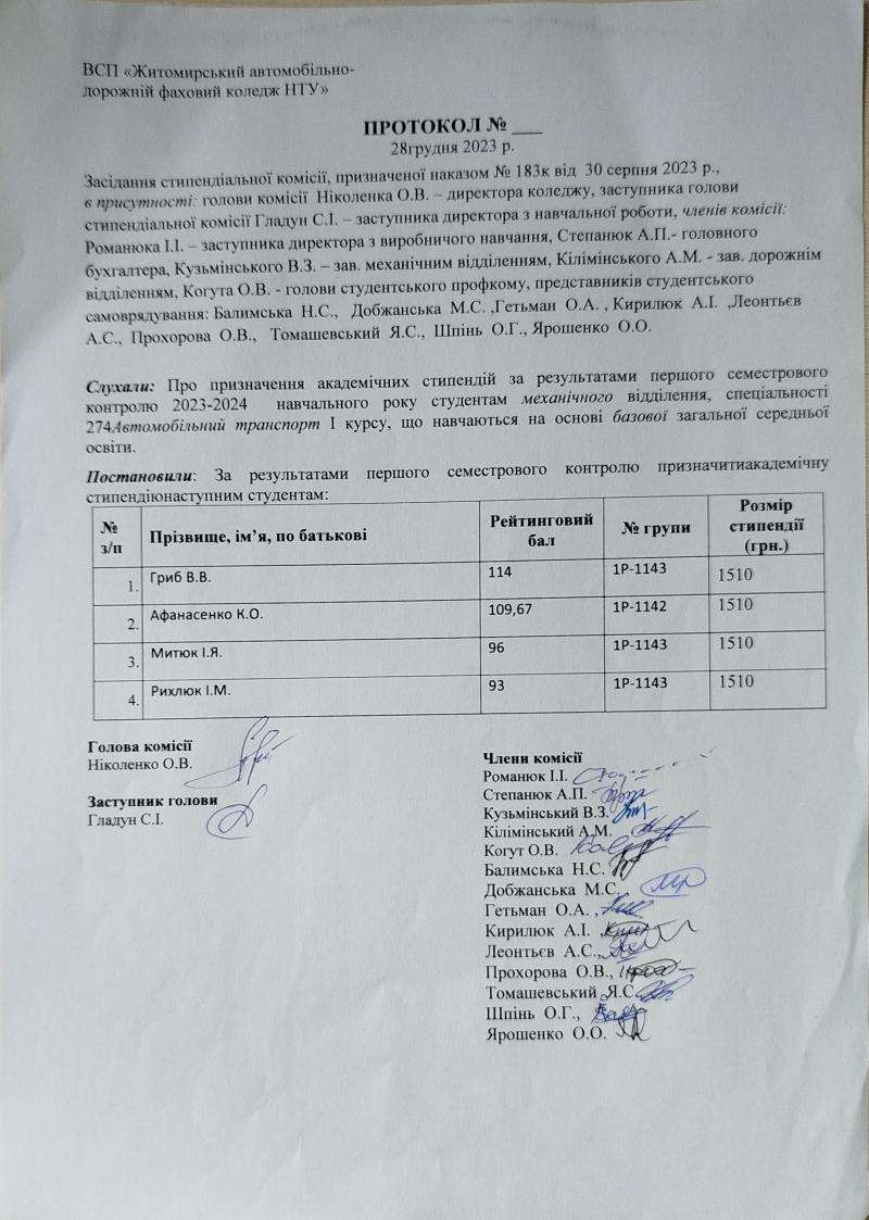 Протоколи призначення академічної стипендії за результатами вступної компанії 2023 року