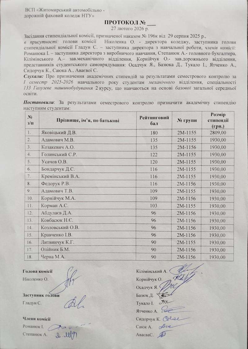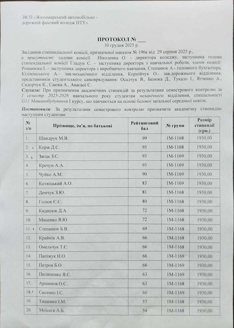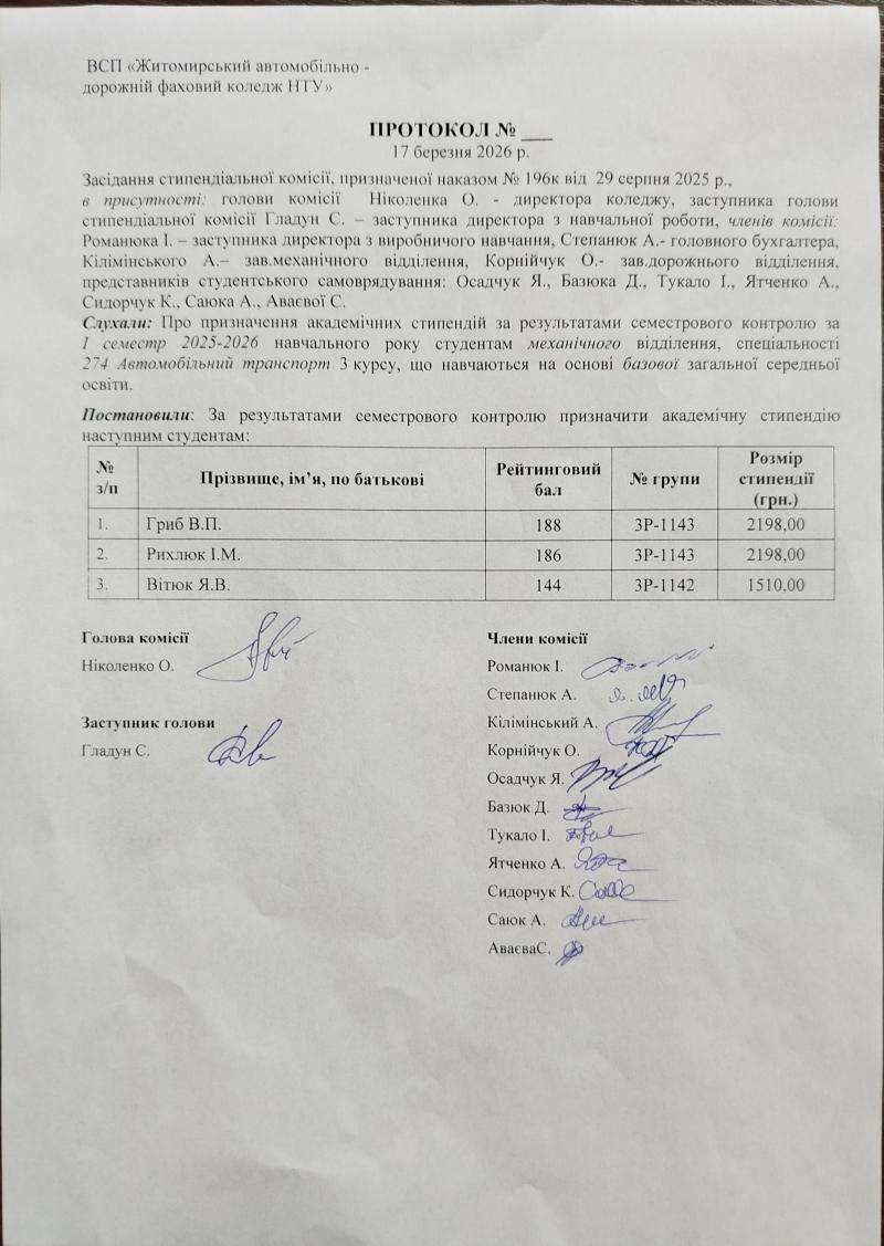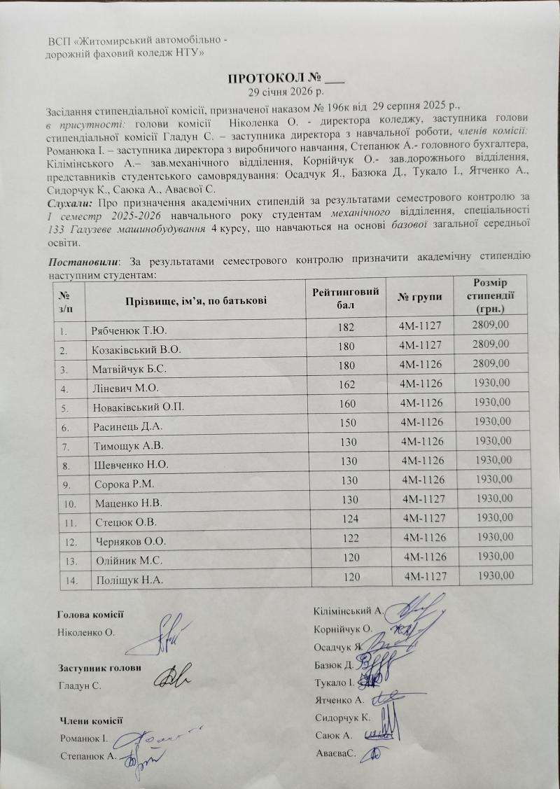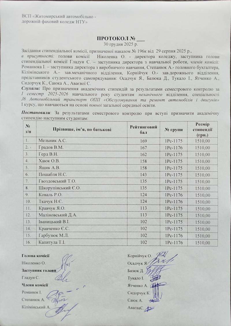 Результати рейтингового контролю та рішення стипендіальної комісії 2025-2026 н.р.