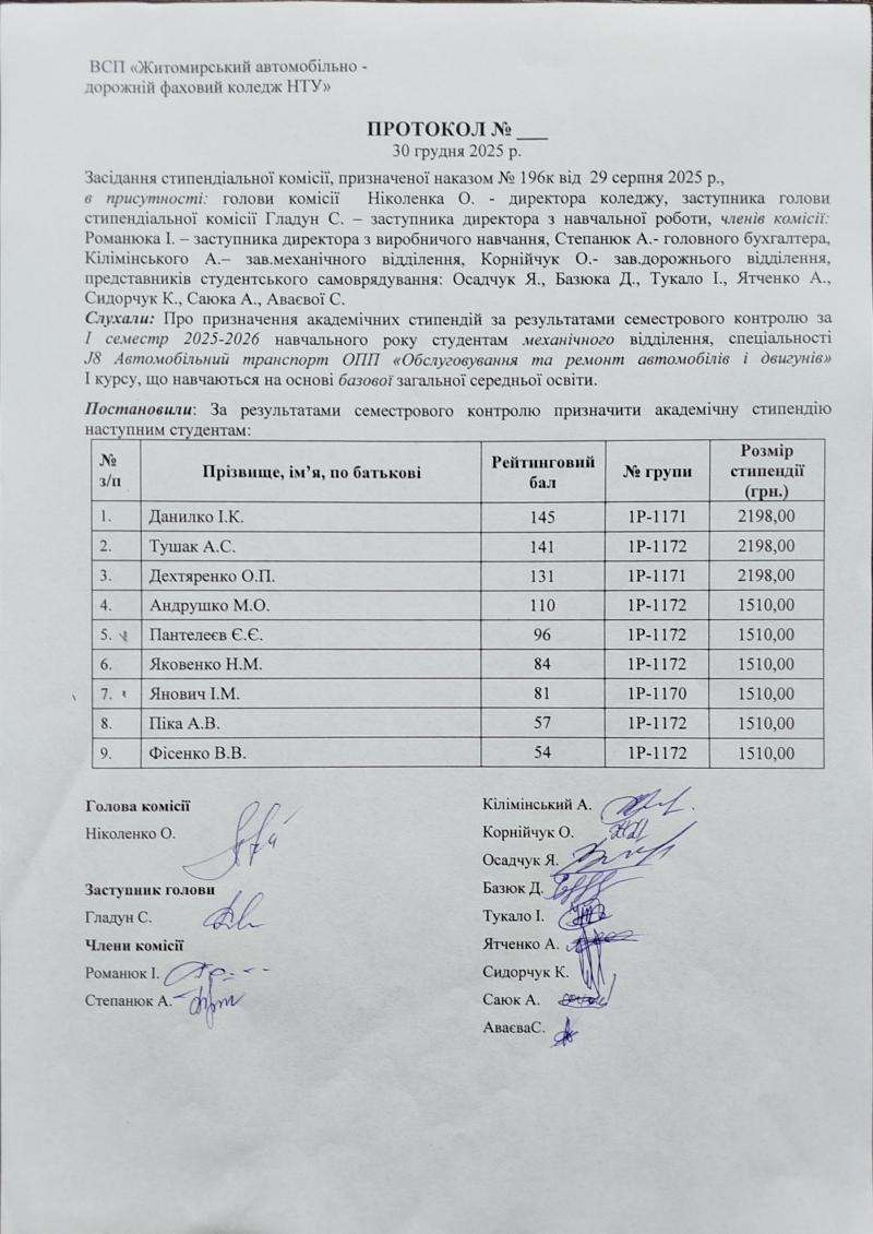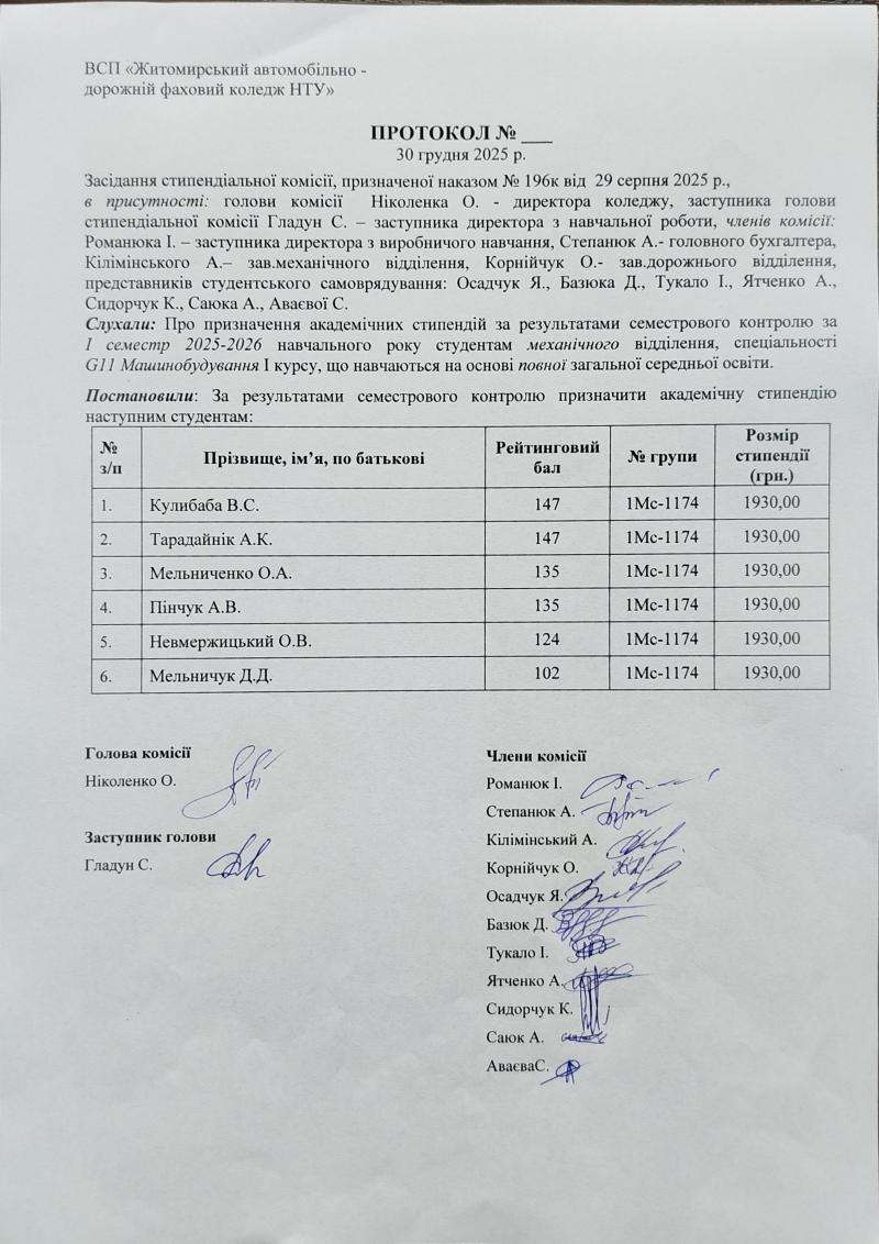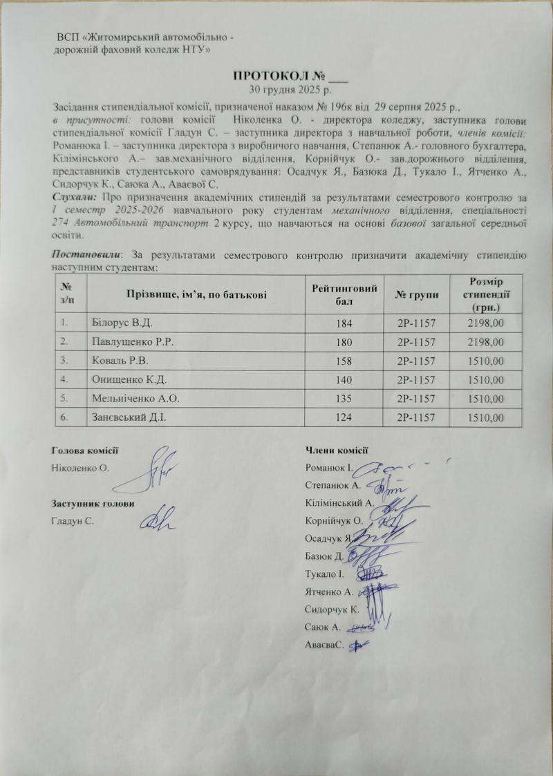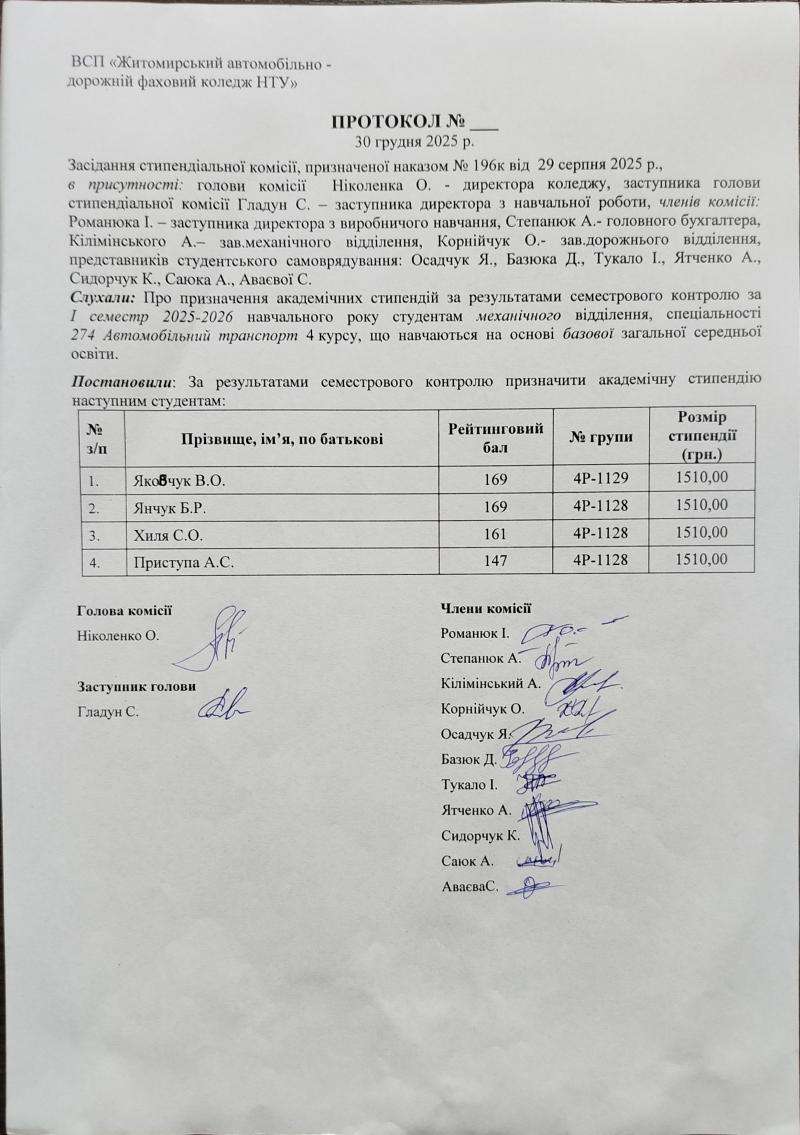 Результати рейтингового контролю та рішення стипендіальної комісії 2025-2026 н.р.