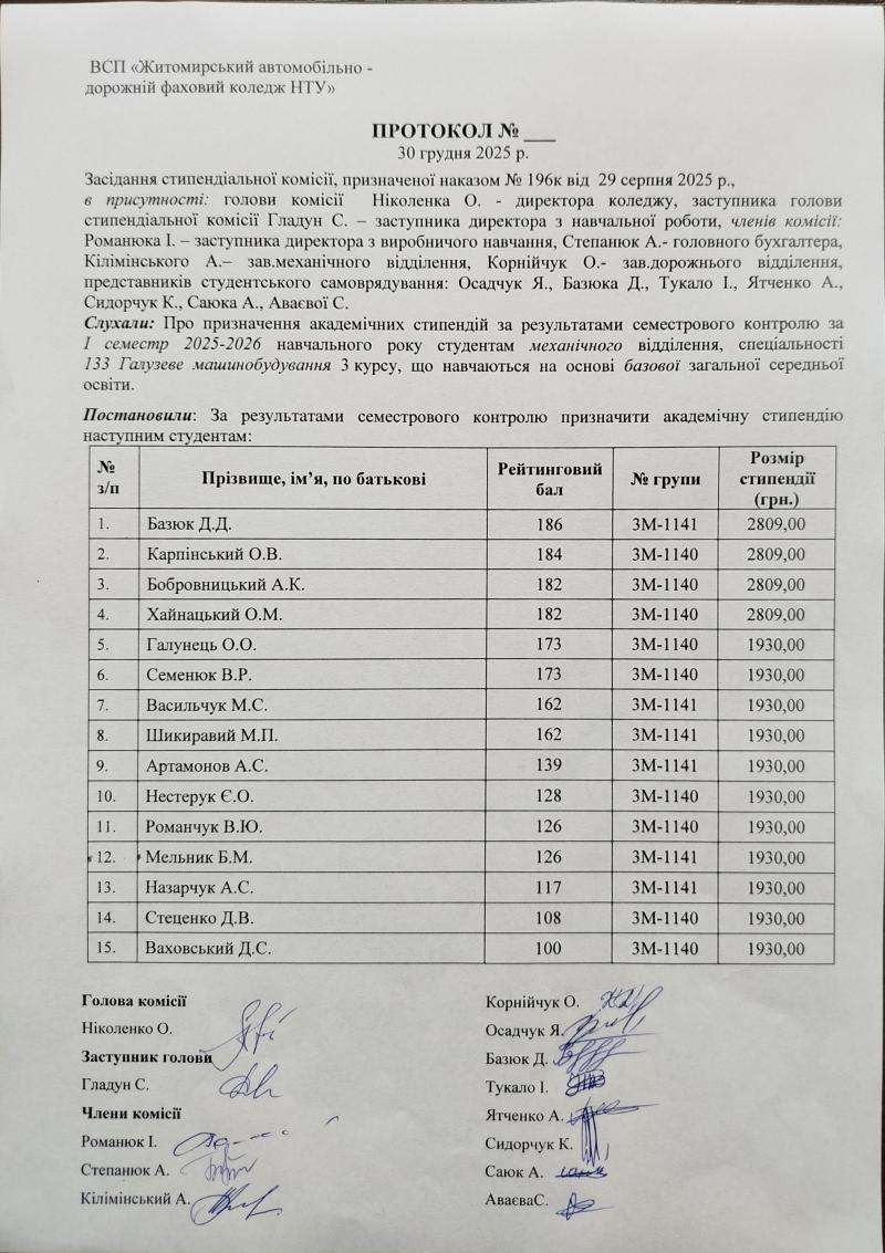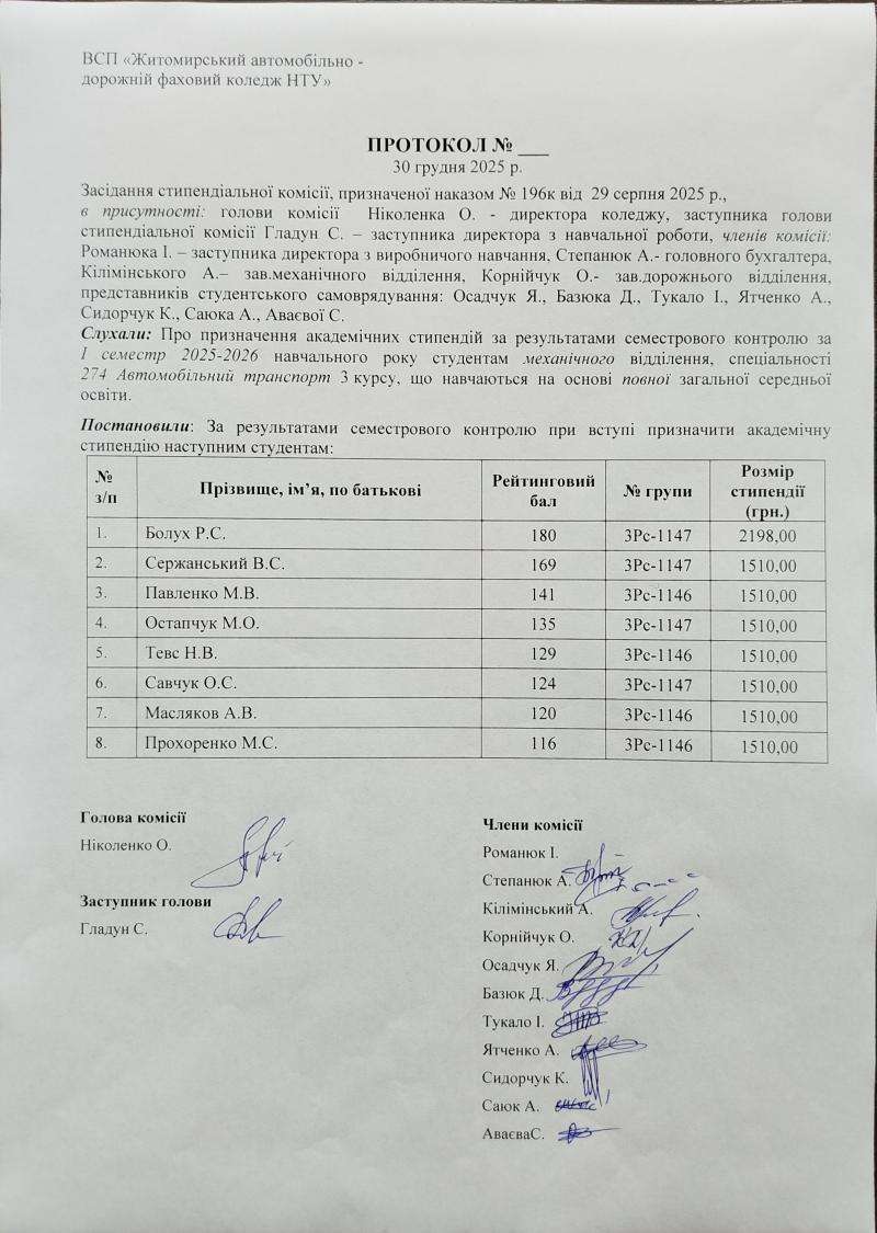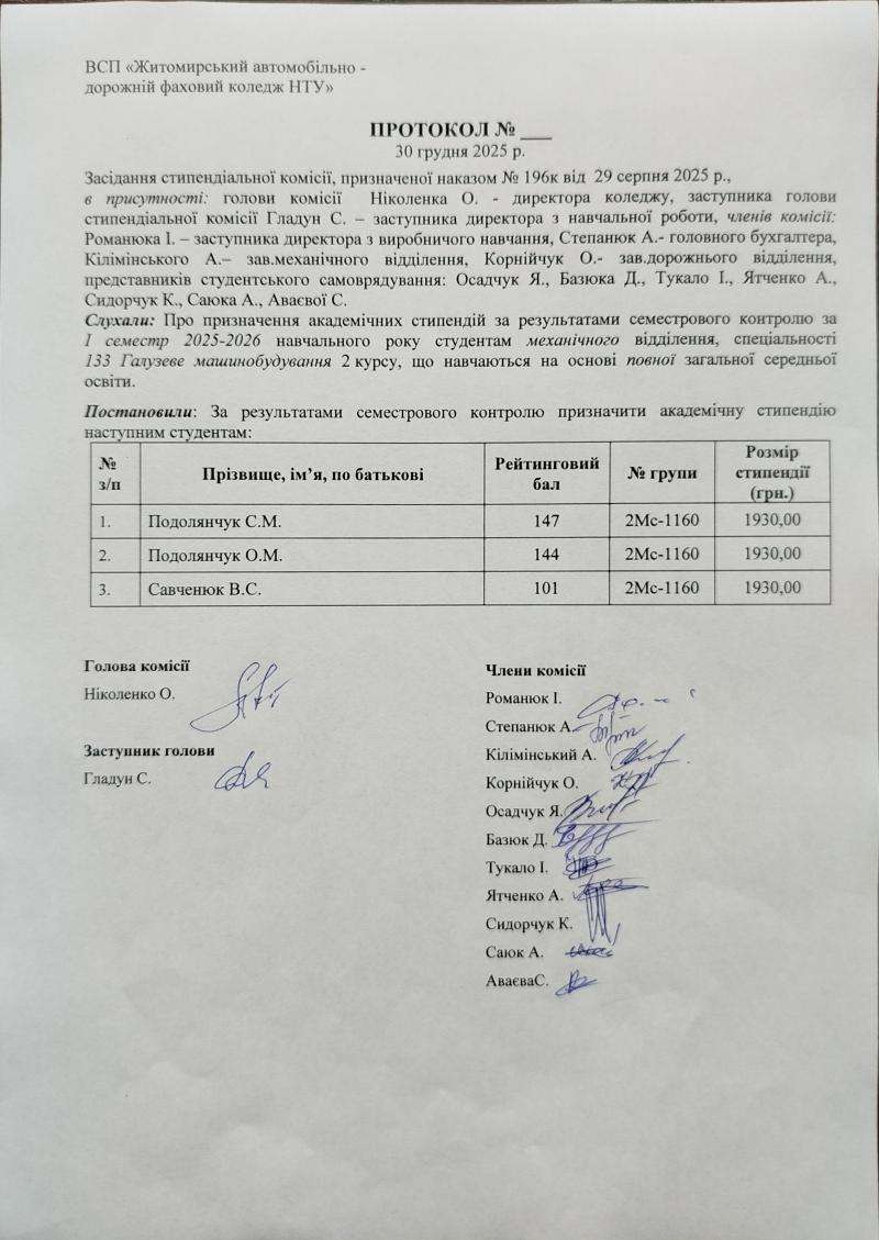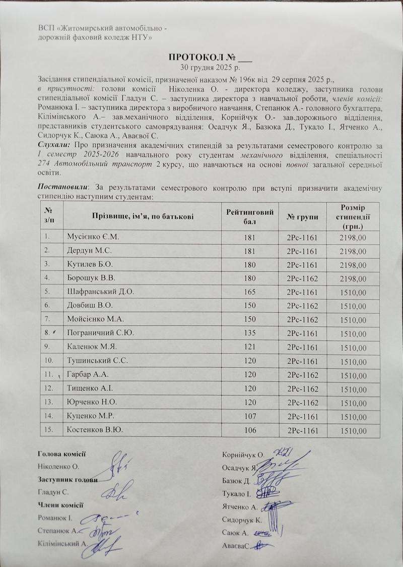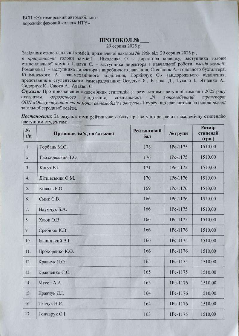 Результати рейтингового контролю та рішення стипендіальної комісії 2025-2026 н.р.