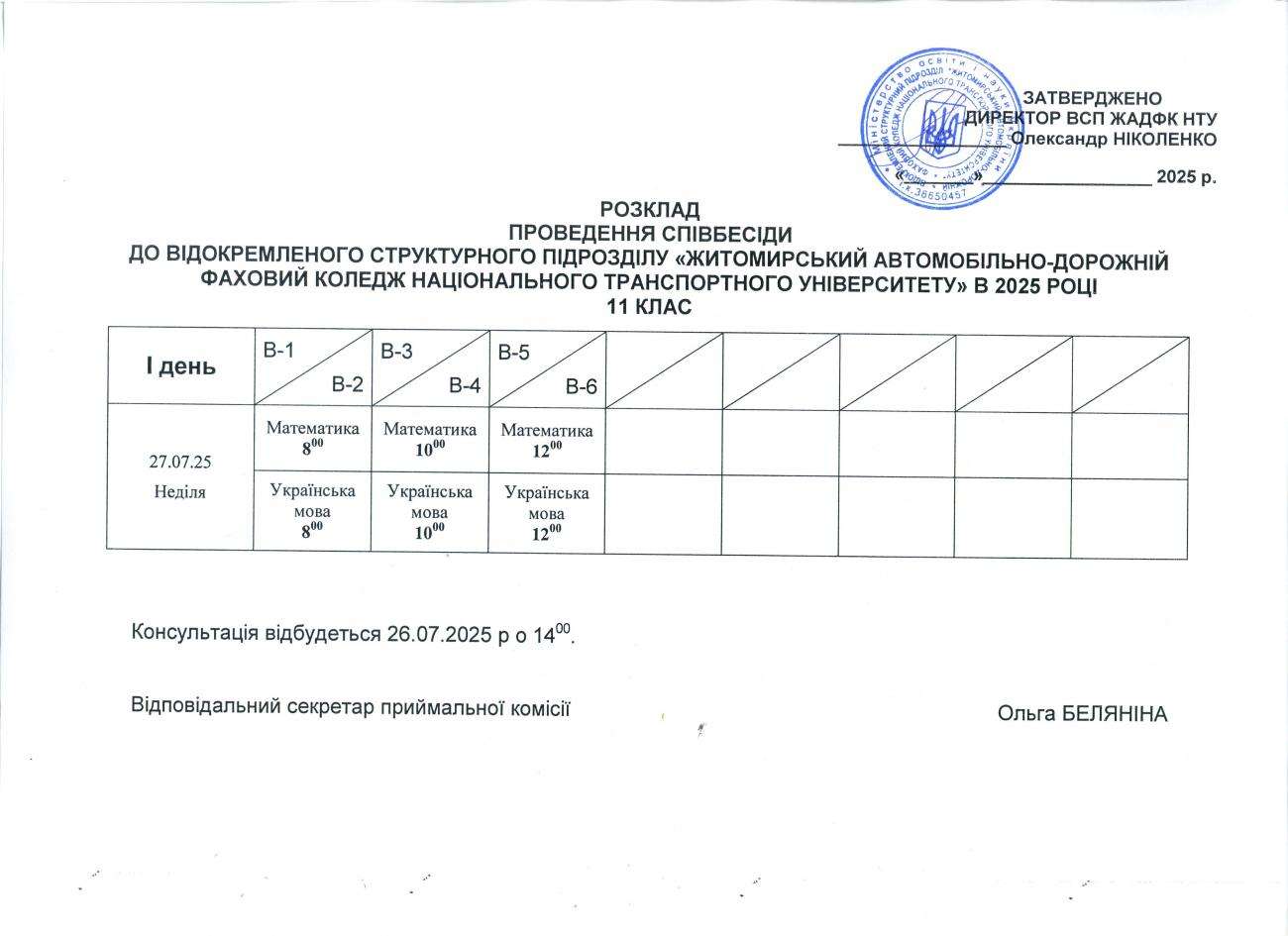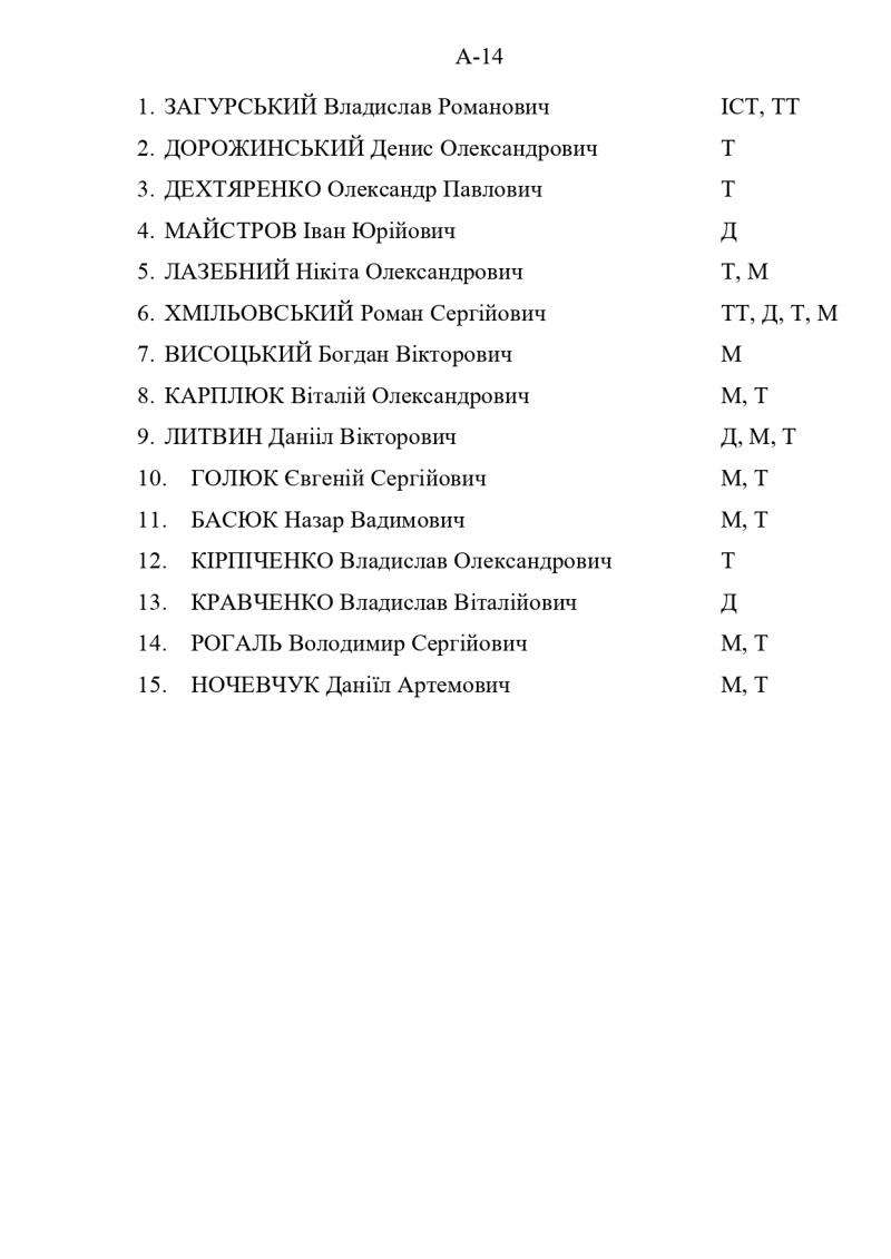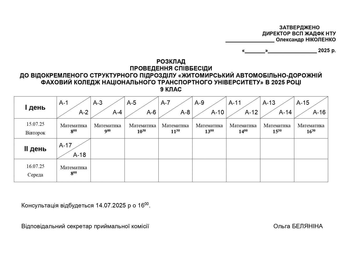 Розклад вступних випробувань та списки абітурієнтів
