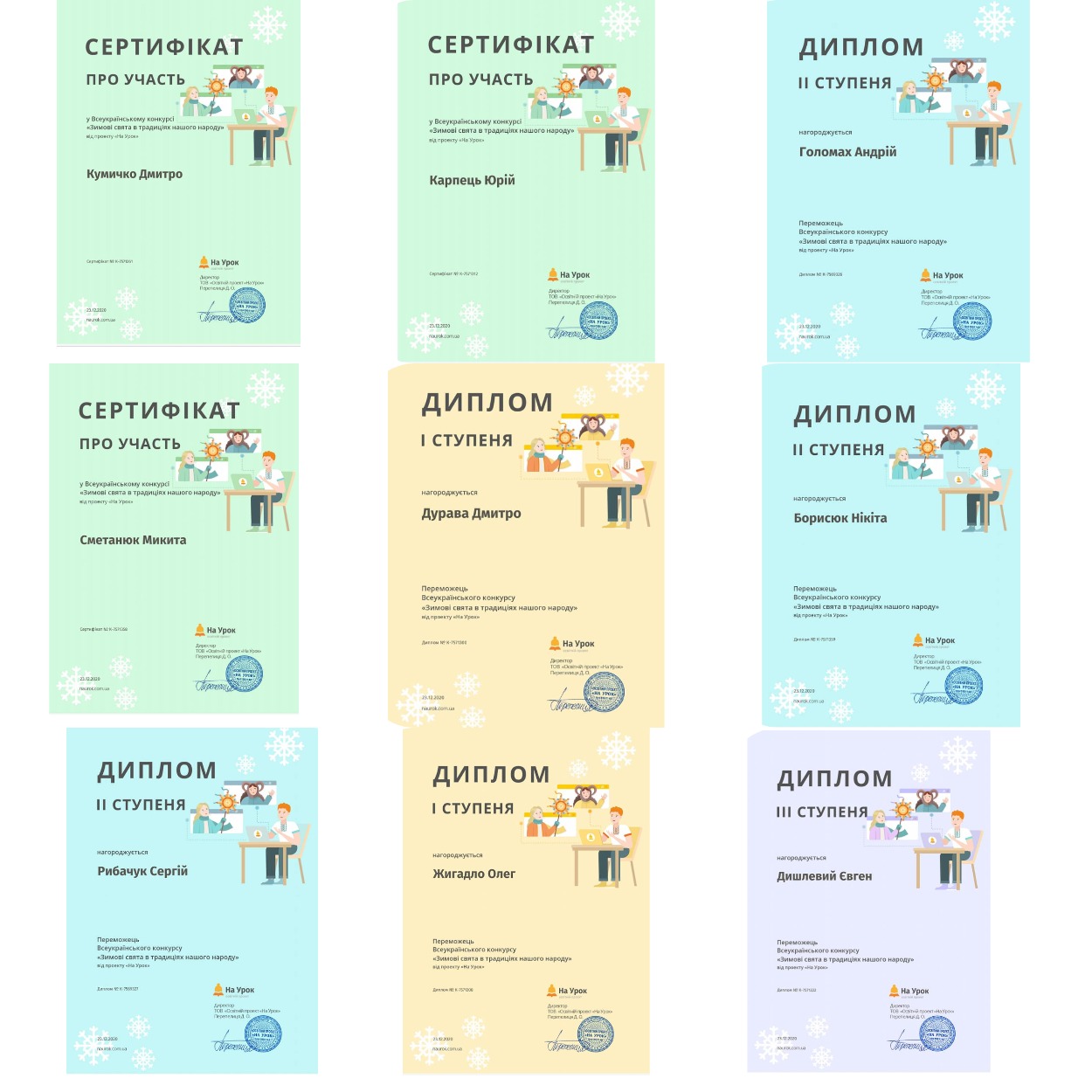 Напередодні зимових святкувань студенти групи 1Р-1097 ВСП "Житомирського автомобільно-дорожнього фахового коледжу НТУ" під керівництвом викладача Паренюк М.П. взяли участь у Всеукраїнському конкурсі "Зимові свята в традиціях нашого народу", організованого освітнім проєктом "На урок".