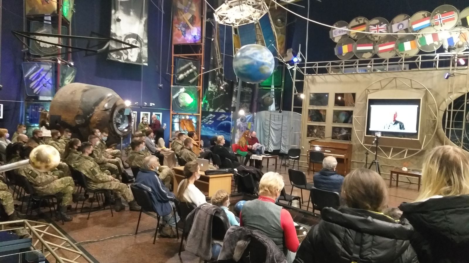 Студенти ВСП "Житомирський автомобільно-дорожній фаховий коледж Національного транспортного університету" 23 лютого, напередодні 150-річчя від дня народження видатної української поетеси, письменниці, перекладачки Лесі Українки, відвідали Національний музеї космонавтики ім. С.П.Корольова, де було реалізовано Міжнародний мистецький проєкт “Космос Лесі Українки”.