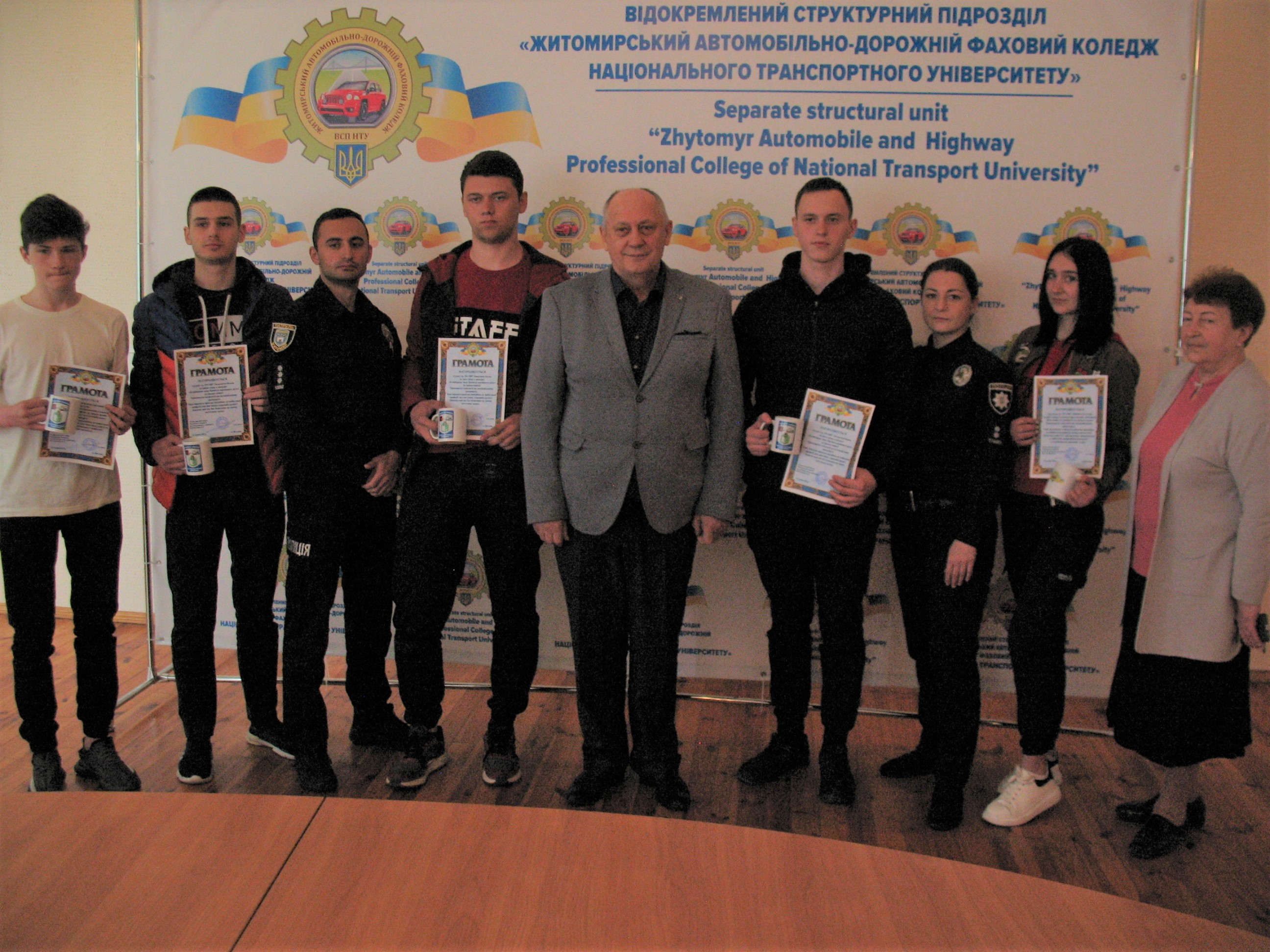 - за виконання найкращої презентації серед студентів спеціальності 275 Транспортні технології (на автомобільному транспорті) в номінації «Моя майбутня професія» з нагоди Декади комісії.