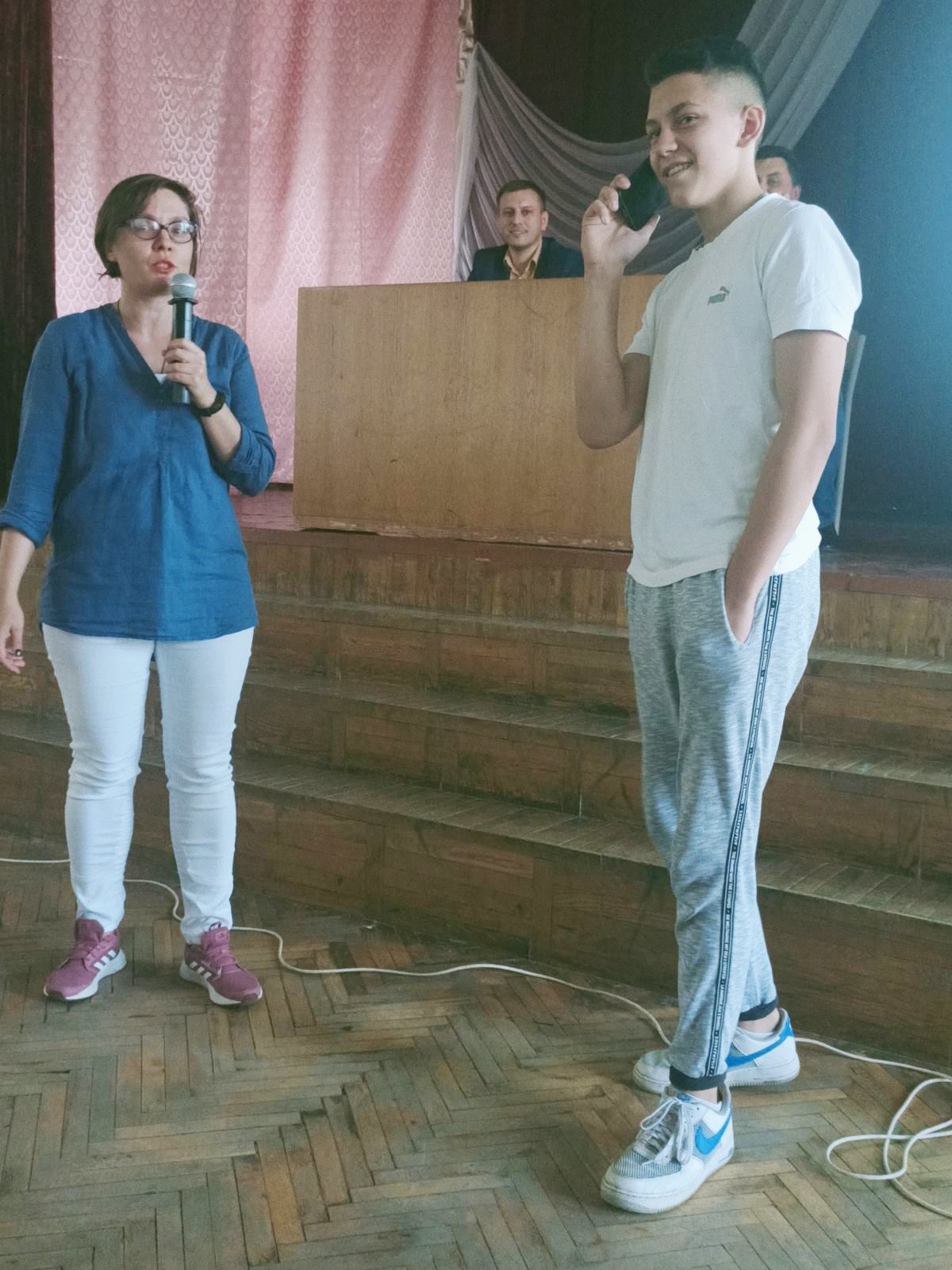 Дарина Гончарова розпочала свій виступ з ознайомлення молодих людей знаннями законів про актуальні питання прав підлітків, а також звернула увагу на те, на яку допомогу може розраховувати молодь. Згадала також про види відповідальності для неповнолітніх та з якого віку вона наступає. Що таке ВІДНОВЛЕНЕ ПРАВОСУДДЯ і хто на нього може розраховувати. Особлива увага приділялась питанню про тяжкі злочини і про те, як їх розрізняти. Це все було продемонстровано практично.