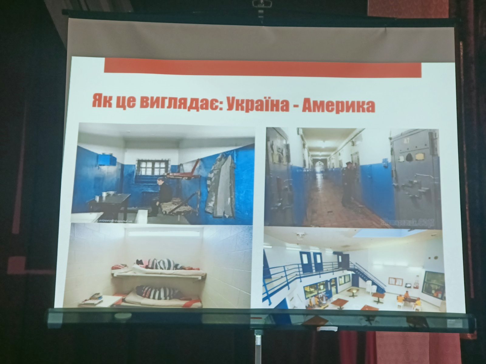 Запрошена гостя презентувала місця позбавлення волі України і Америки, звертаючи увагу на побутові умови та харчування ув’язнених.