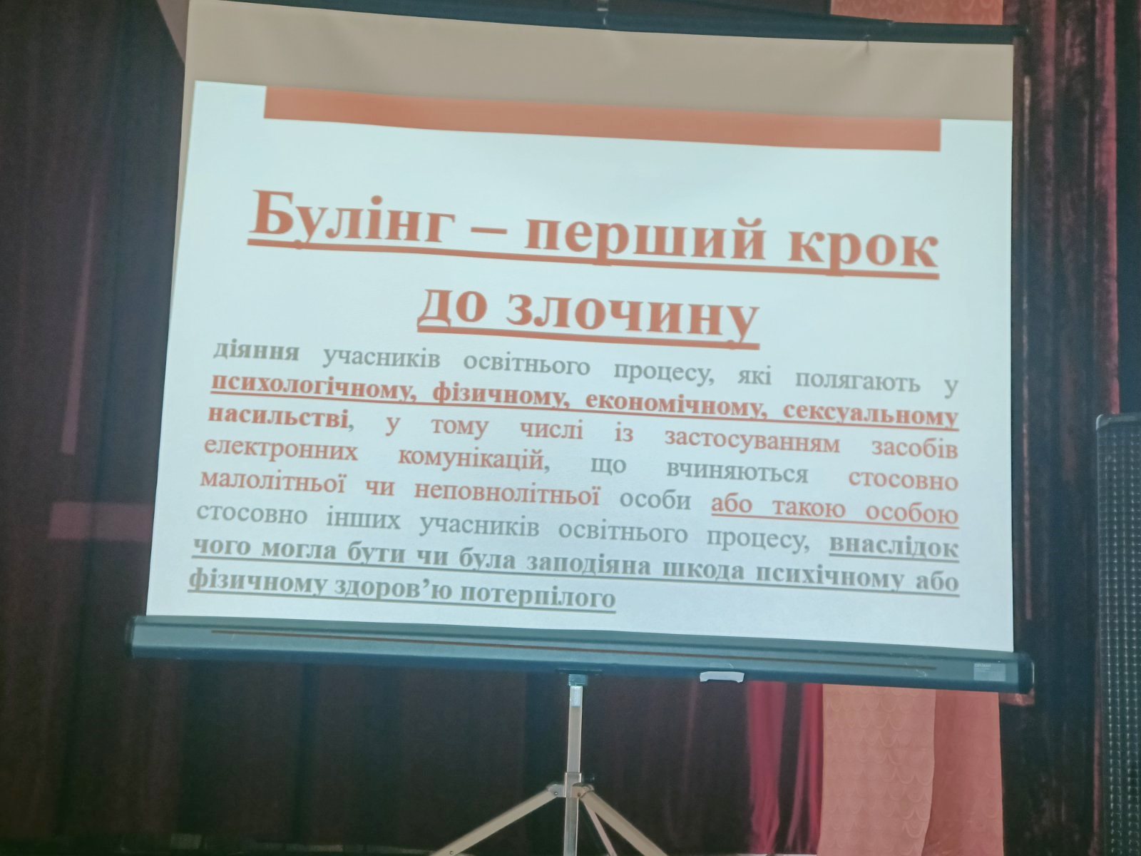 Особливу увагу приділено питанням БУЛІНГУ, ЯК ПЕРШОГО КРОКУ ДО ЗЛОЧИНУ і його наслідки.