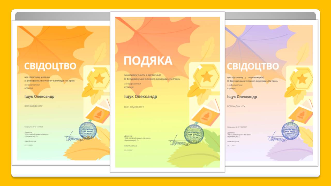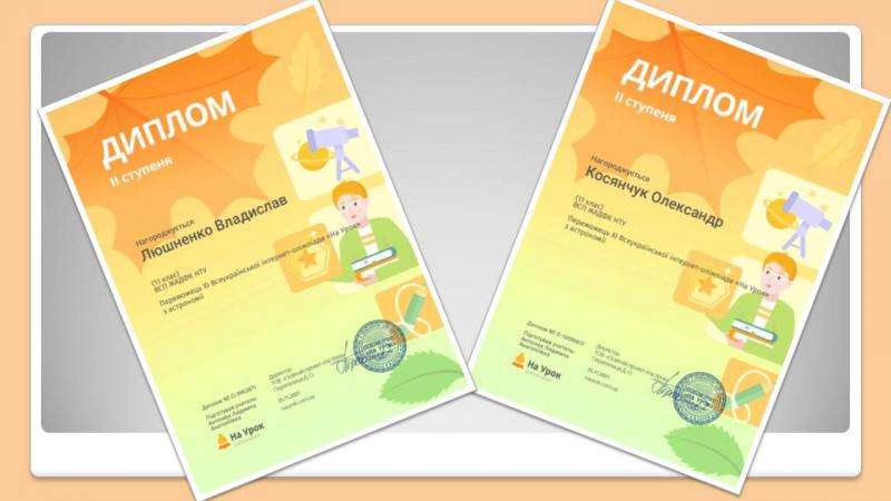 Наші студенти вже другий рік поспіль беруть участь у Всеукраїнських олімпіадах та конкурсах від освітнього проєкту «На Урок». Цього разу вирішили спробувати свої сили у олімпіадах з інформатики, фізики (І курс на базі 9 кл) та астрономії (ІІ курс на базі 9 кл).
