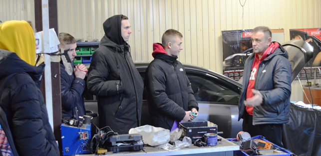 Студенти ознайомилися з технологічним обладнання СТО. Ознайомилися з технологіями діагностування, технічного обслуговування та ремонту автотранспортних засобів. Особливу зацікавленість студентів викликали стенди лазерного очищення деталей, водневого очищення двигунів, розточування гальмівних дисків безпосередньо на автомобілі.