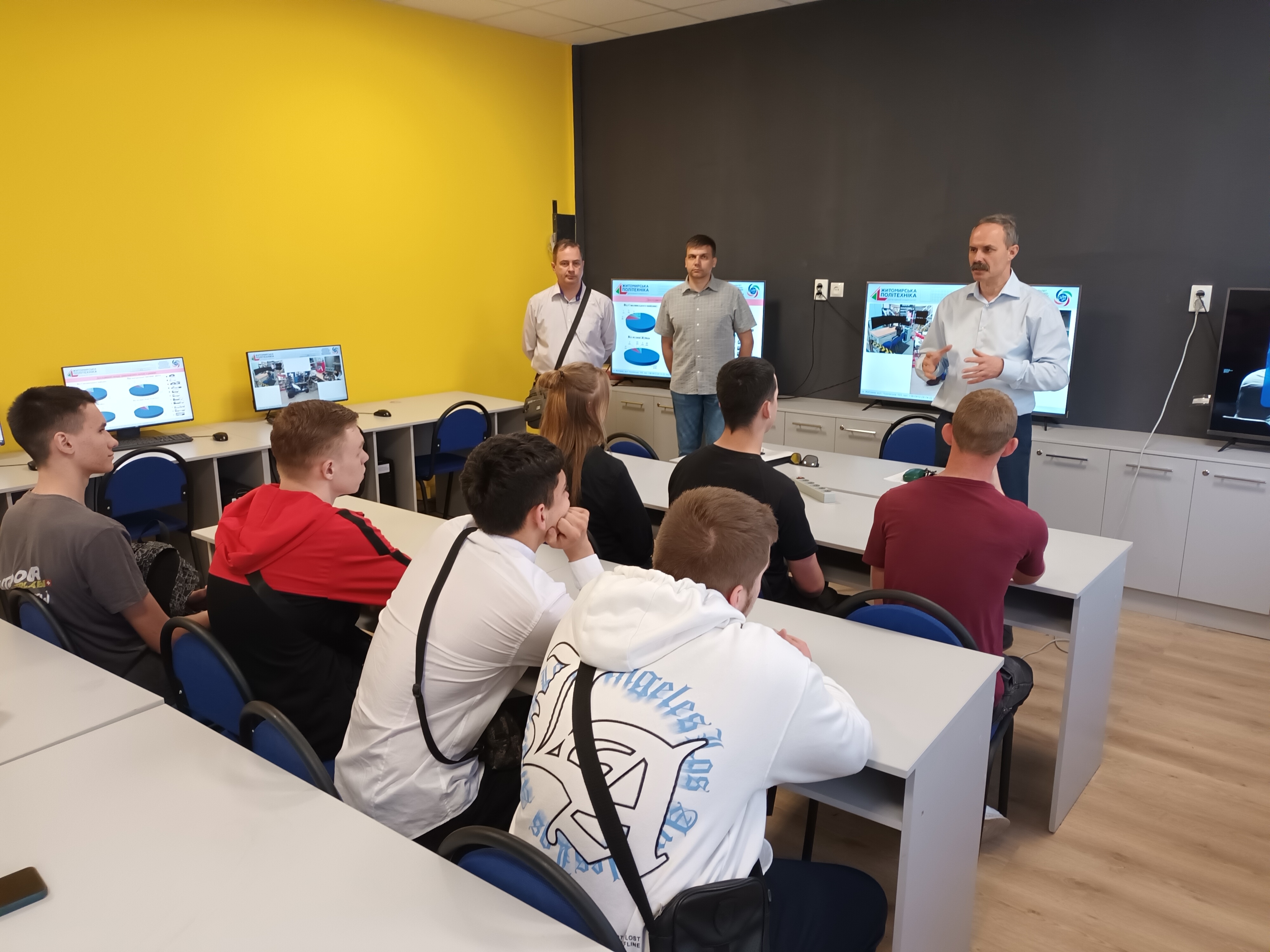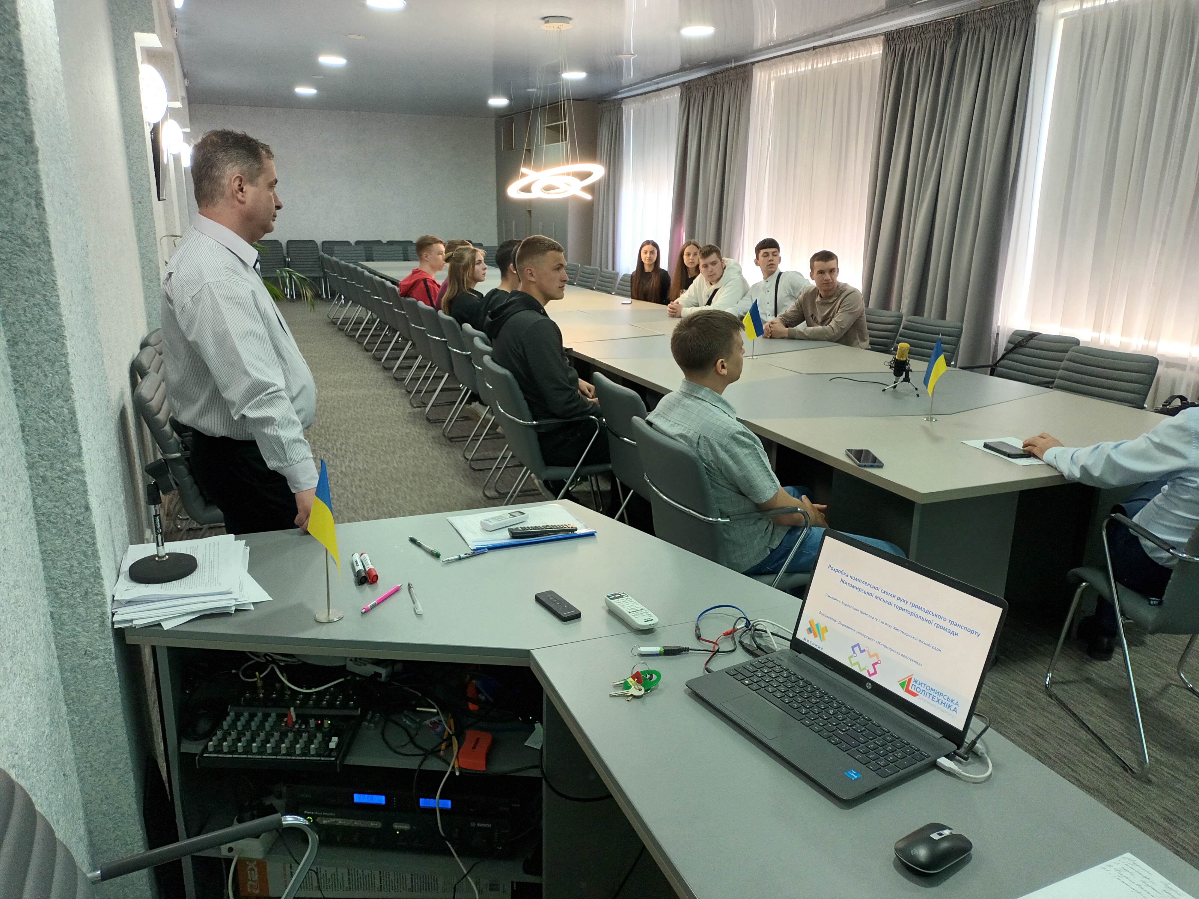 2 травня 2024 року у Державному університеті «Житомирська політехніка» науково-педагогічними працівниками кафедри автомобілів і транспортних технологій кандидатами технічних наук, доцентами Володимиром Шумляківським та Дмитром Бегерським для студентів гр.3ТТ-1107, які навчаються за освітньо-професійною програмою «Організація та регулювання дорожнього руху» були прочитані тематичні навчальні лекції з «Організації дорожнього руху». Студенти коледжу отримали можливість детальніше ознайомитись із сучасними підходами до модернізації маршрутної мережі м. Житомира, моделюванням дорожнього руху, що відкриваються завдяки сучасним технологіям.