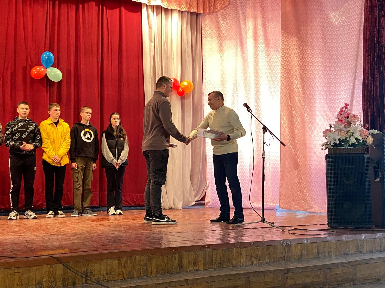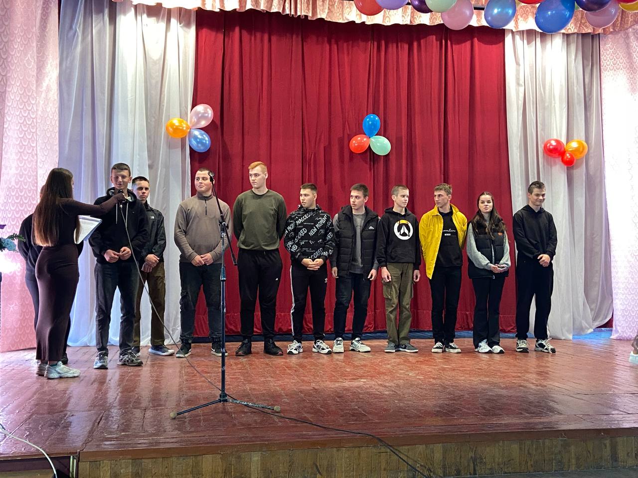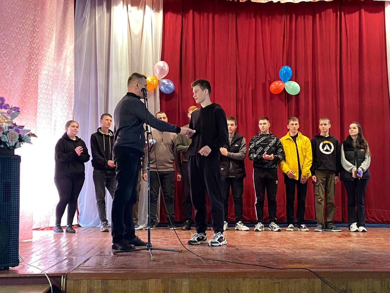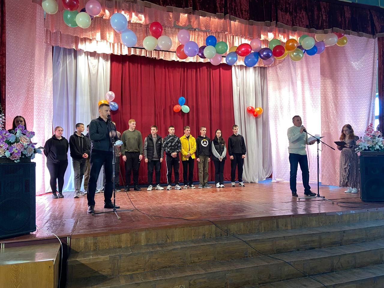 Студентів нового набору вітали Голова студентського профкому Олександр Когут, завідуючі відділеннями Віктор Кузьмінський та Андрій Кілімінський та керівник фізичного виховання Олександр Гринчук.