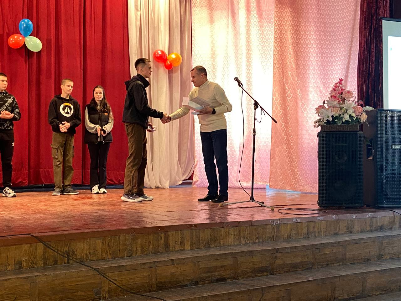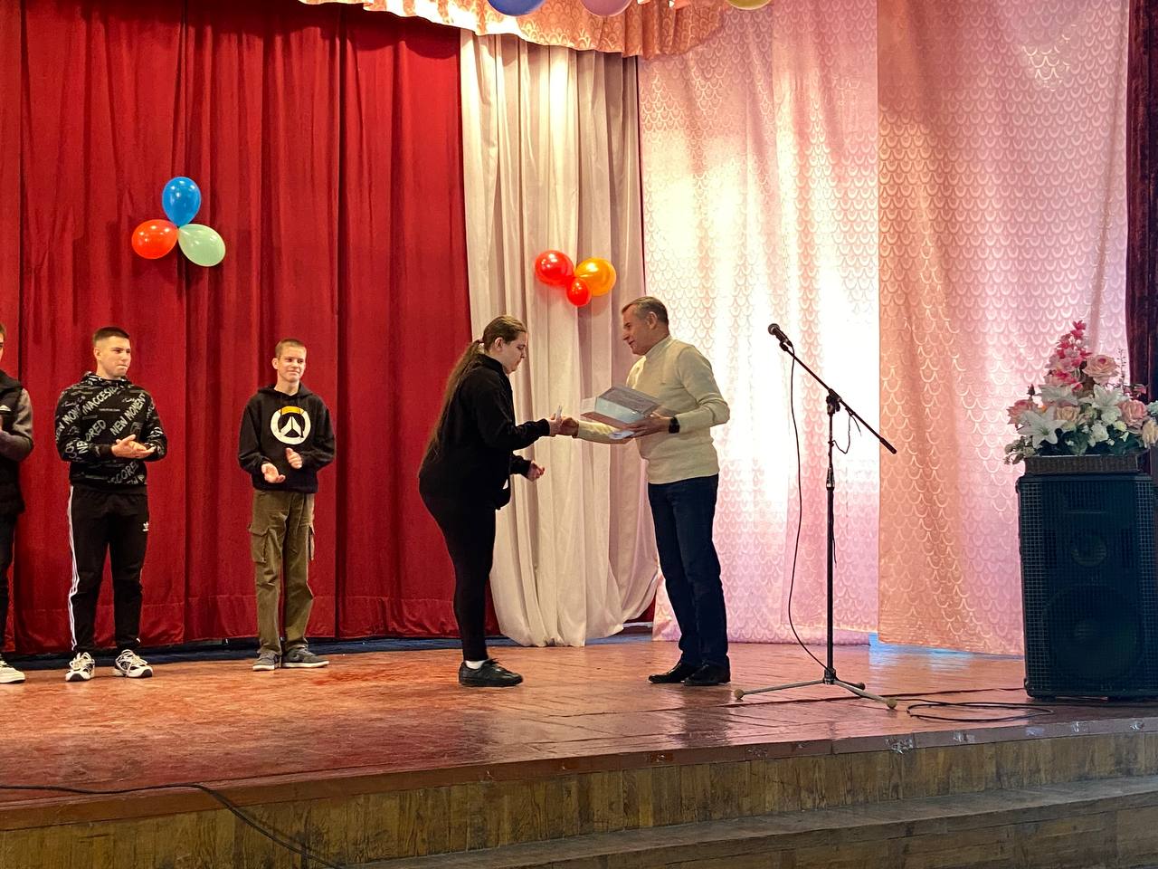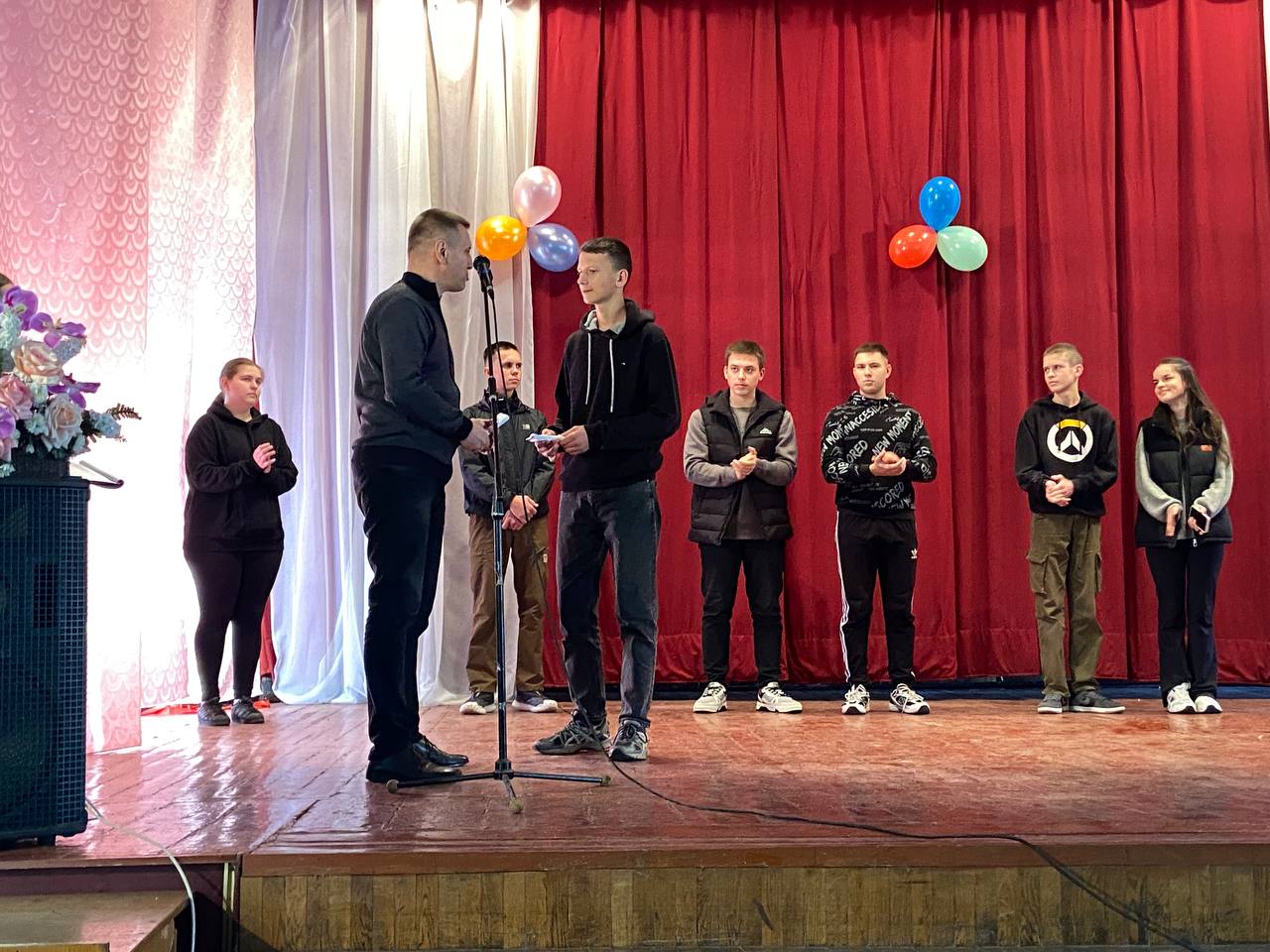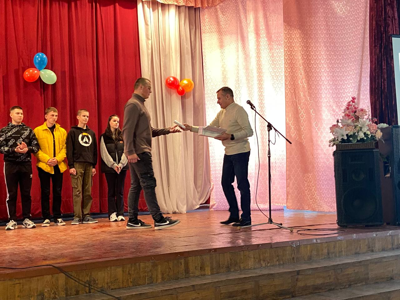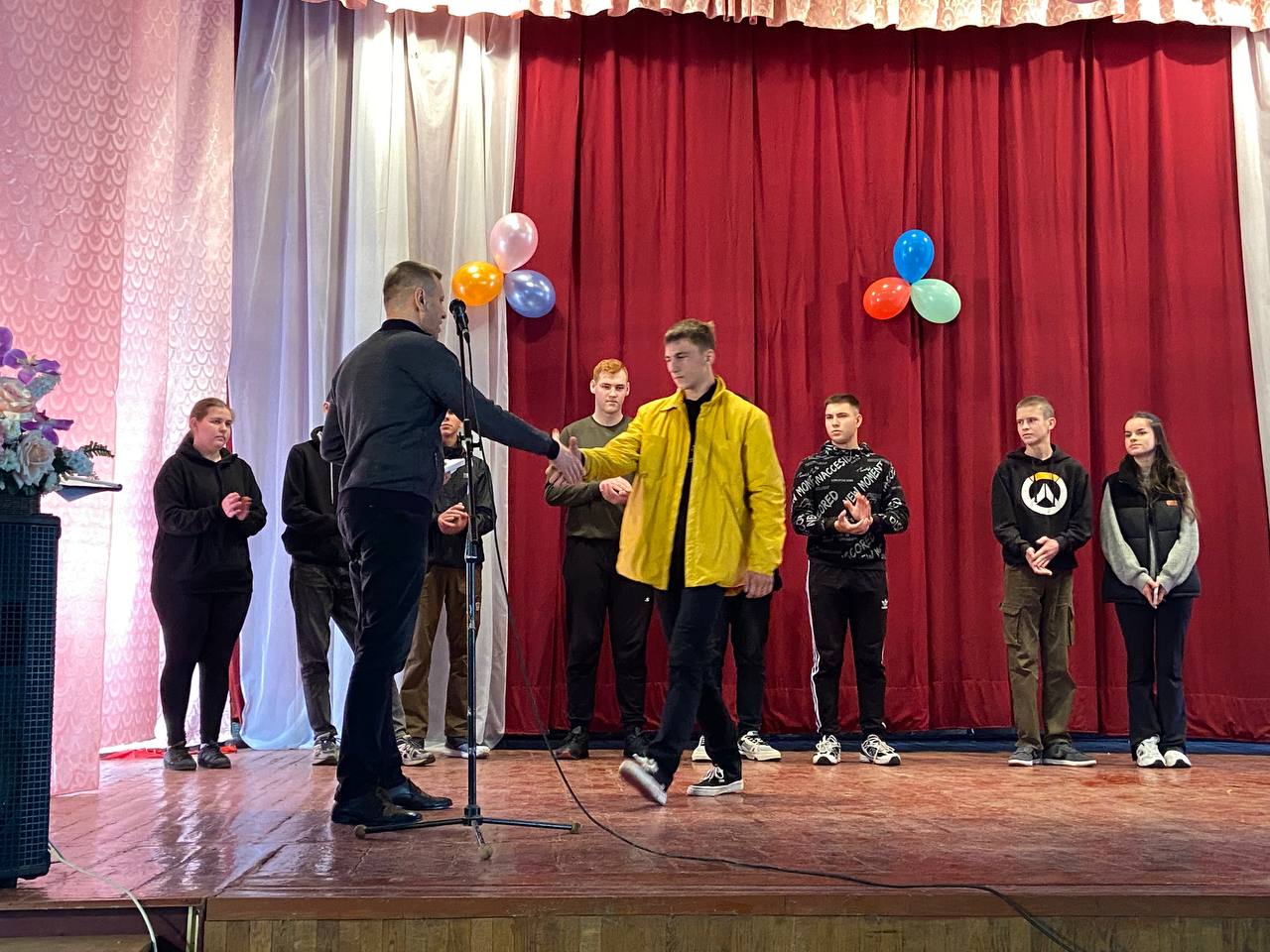 Студентів нового набору вітали Голова студентського профкому Олександр Когут, завідуючі відділеннями Віктор Кузьмінський та Андрій Кілімінський та керівник фізичного виховання Олександр Гринчук.