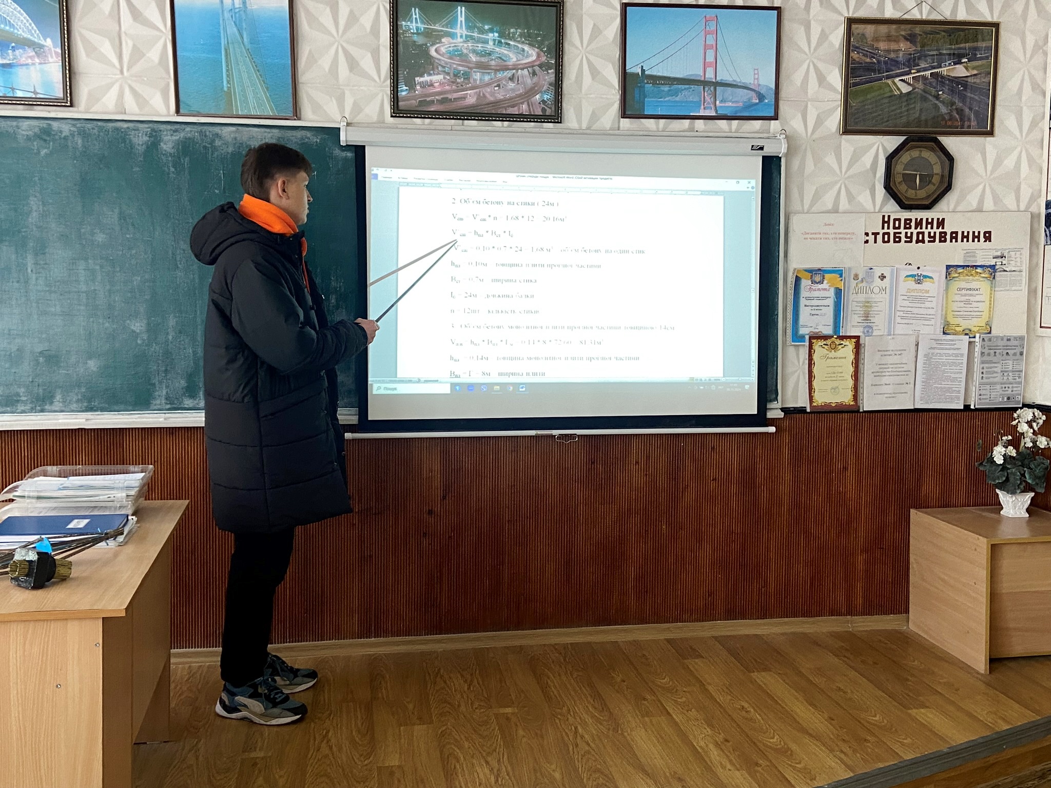 В рамках Тижня спеціальності 192 Будівництво та цивільна інженерія 5 листопада 2024 року відбувся захист практичних робіт групи 4Д-1108 на тему 5.3: “Балочні залізобетонні мости” з освітнього компоненту "Штучні споруди". Також на захід були запрошені студенти групи 3Дс-1130, викладачі комісії та адміністрація коледжу.