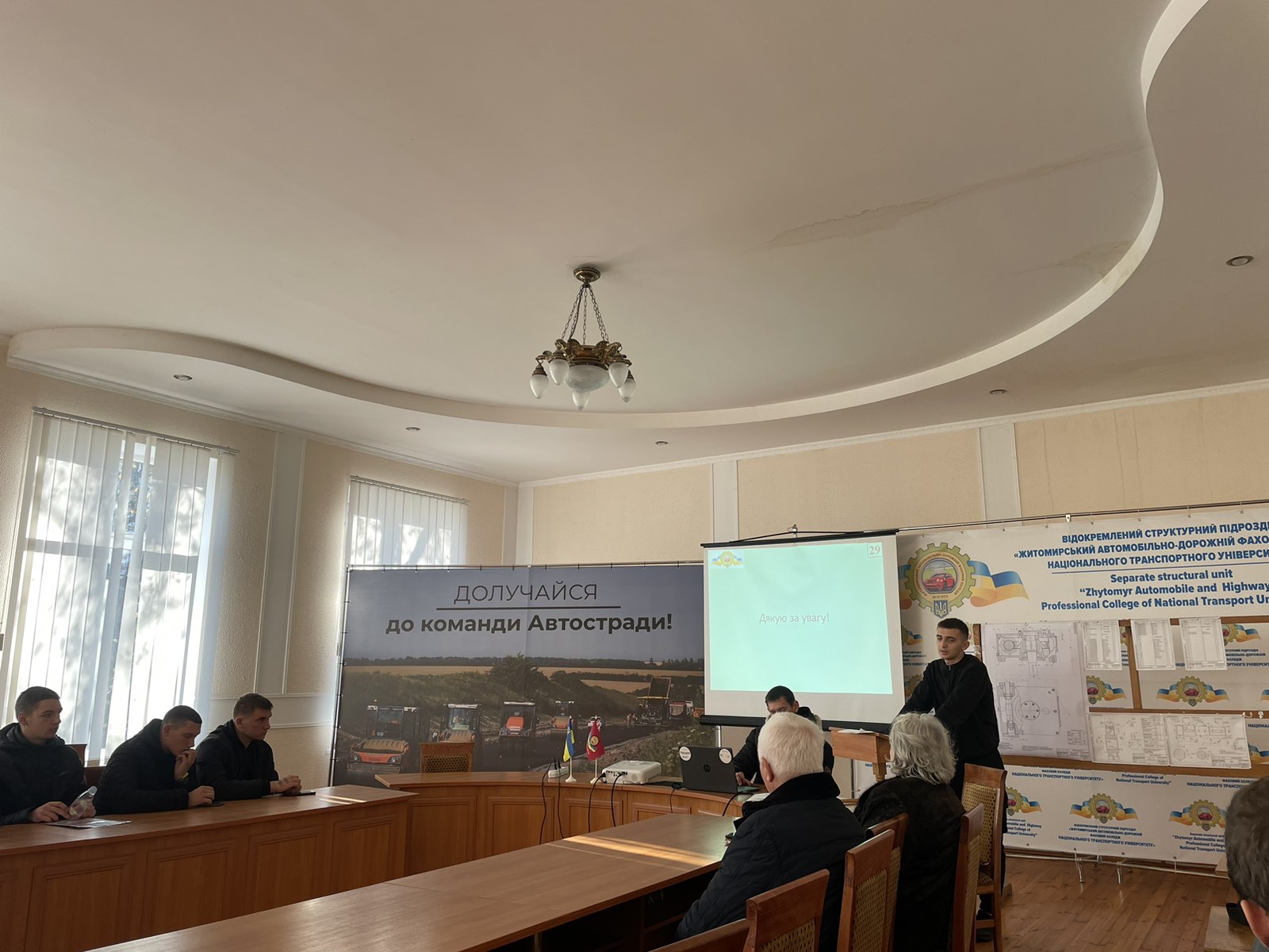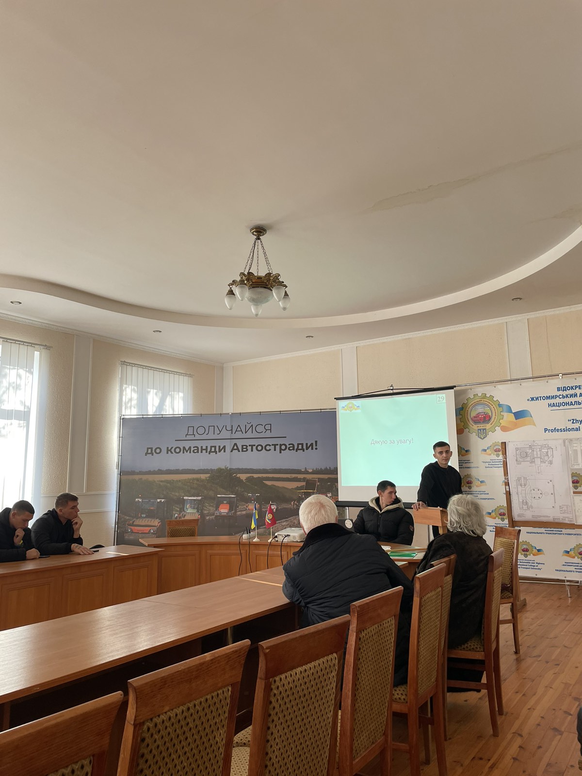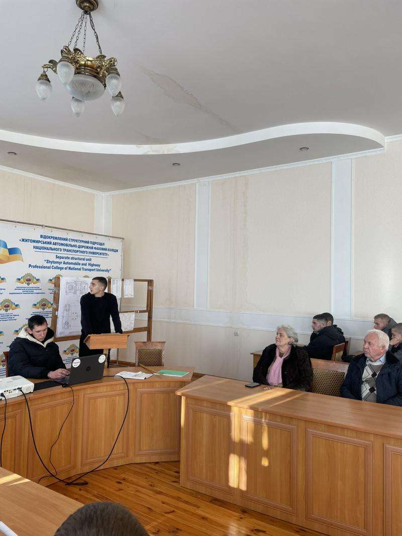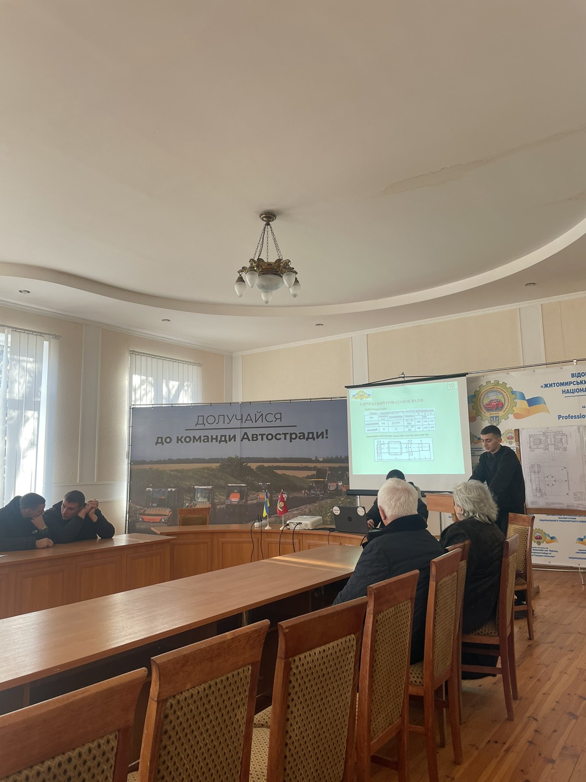 7 листопада 2024 року відбувся показовий захист курсового проєкту з освітнього компоненту «Деталі машин» для студентів спеціальності 133 Галузеве машинобудування ( викл. Іщук Т.А.). Свою роботу представив на захист студент групи 2Мс-1145 Дорош Сергій на тему «Розрахунок і конструювання черв’ячного редуктора механизму повороту крана». Виконання курсового проєкту є підсумком вивчення освітнього компонента. Мета курсового проєкту – систематизувати, закріпити та розширити теоретичні знання, поєднати їх з практичними матеріалами, а також обґрунтувати результати власного проєкту. Комісія високо оцінила якість виконаного Сергієм Дорошем курсового проєкту, рівень його знань і набутих навичок за темою, а також його вміння логічно та аргументовано викладати думки, відповідати на запитання. Присутні на захисті студенти отримали уявлення про те, що їх чекає на захисті власних проєктів.