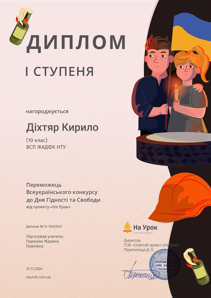 І місце – Діхтяр Кирило (група 1Р-1158)