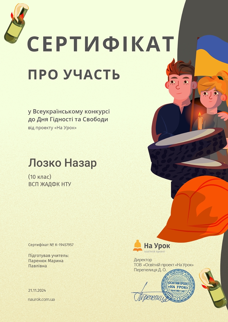 Nому, для того, щоб згадати події Помаранчевої революції 2004 року та Революції Гідності 2013 року студенти ВСП ЖАДФК НТУ під керівництвом викладача Марини Паренюк взяли участь у Всеукраїнському конкурсі «День Гідності та Свободи» на сайті На урок.