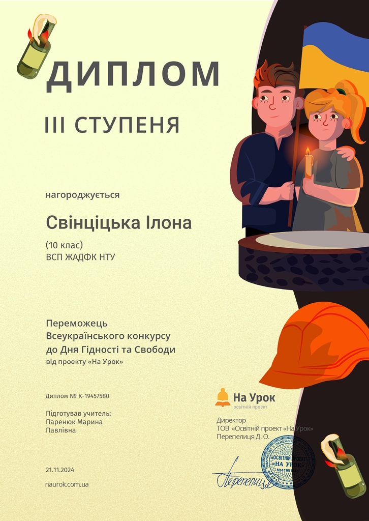 ІІІ місце – Свінціцька Ілона (група 1ТТ-1151)