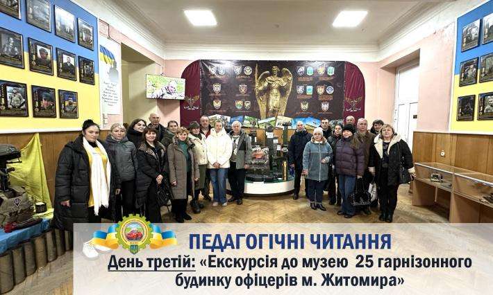 20 грудня 2024 року продовжуючи педагогічні читання, викладачі ВСП ЖАДФК НТУ відвідали музей у 25 гарнізонному будинку офіцерів Житомира. Музей дозволяє глибше зрозуміти історію Української армії, зокрема героїзм і самовідданість воїнів 25-ї бригади, дізнатися про їхню участь у бойових діях, сучасних і минулих операціях, а також про їхній внесок у захист України. Це можливість віддати шану тим, хто боронить незалежність і територіальну цілісність України.