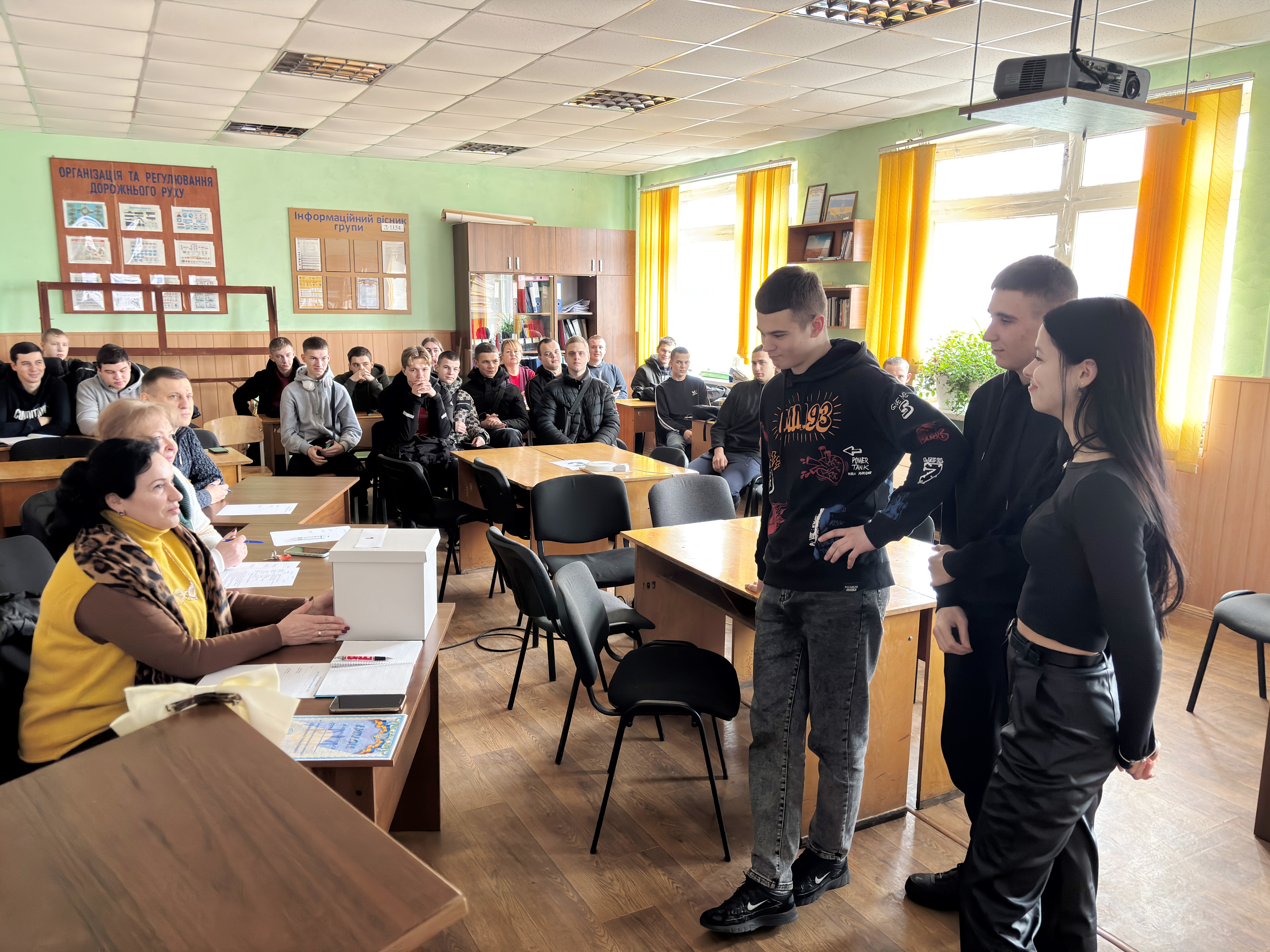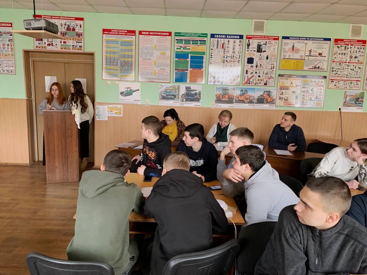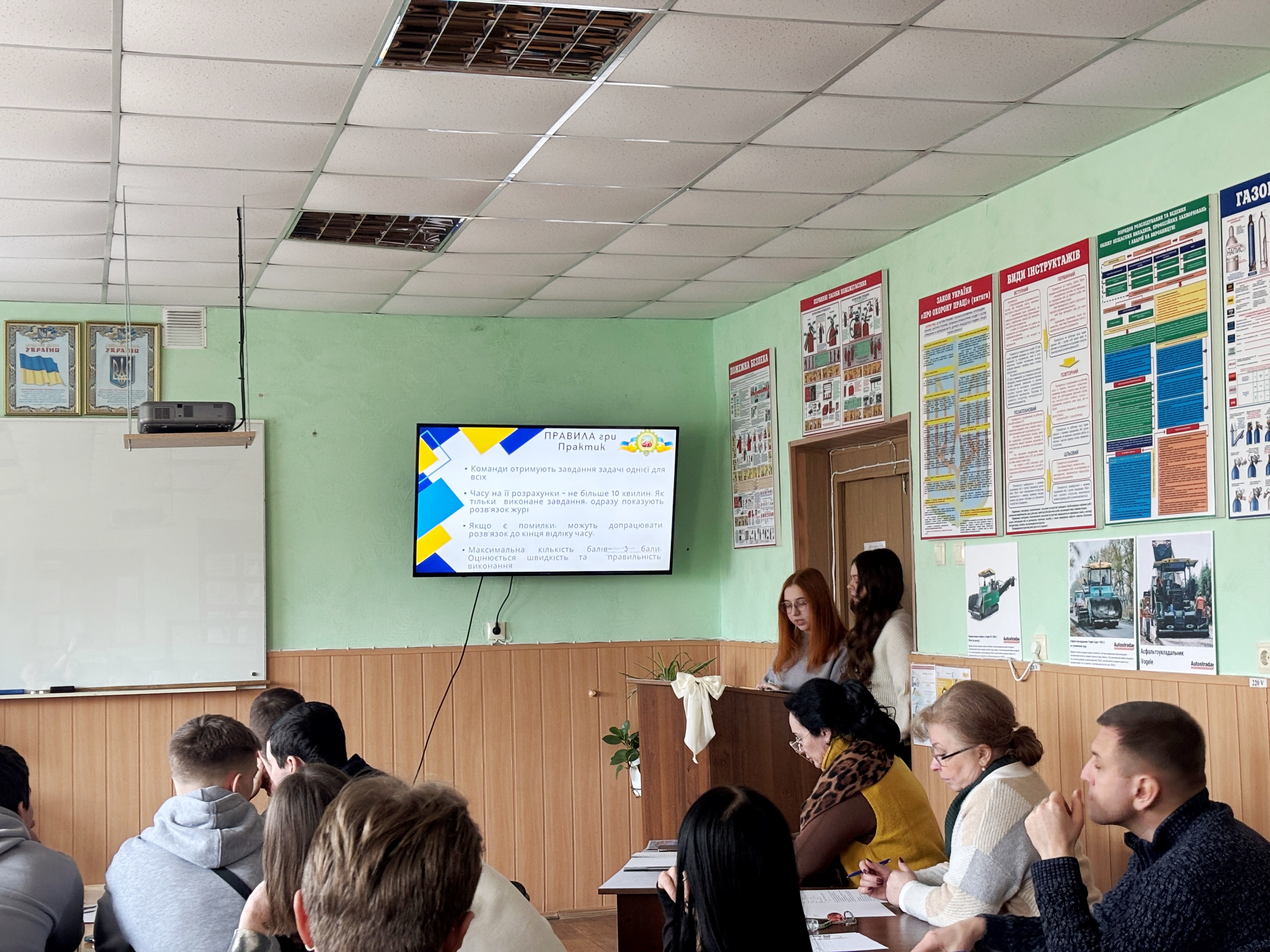 Дякуємо також студенткам випускної групи дорожнього відділення 4Д-1108 Наталії БАЛИМСЬКІЙ, Карині ПОГОРЕЛЕЦЬ та Лілії СЄРОВІЙ., які нещодавно завершили навчання з даної дисципліни і старанно допомогали в написанні сценарію та проведенні заходу.