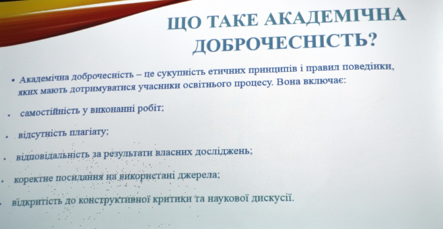 З основною доповіддю виступив голова циклової комісії Юрій Маланюк. Він розкрив поняття академічної доброчесності, її цінності, питання правового забезпечення академічної доброчесності, дії, які передбачає доброчесна поведінка в освіті.