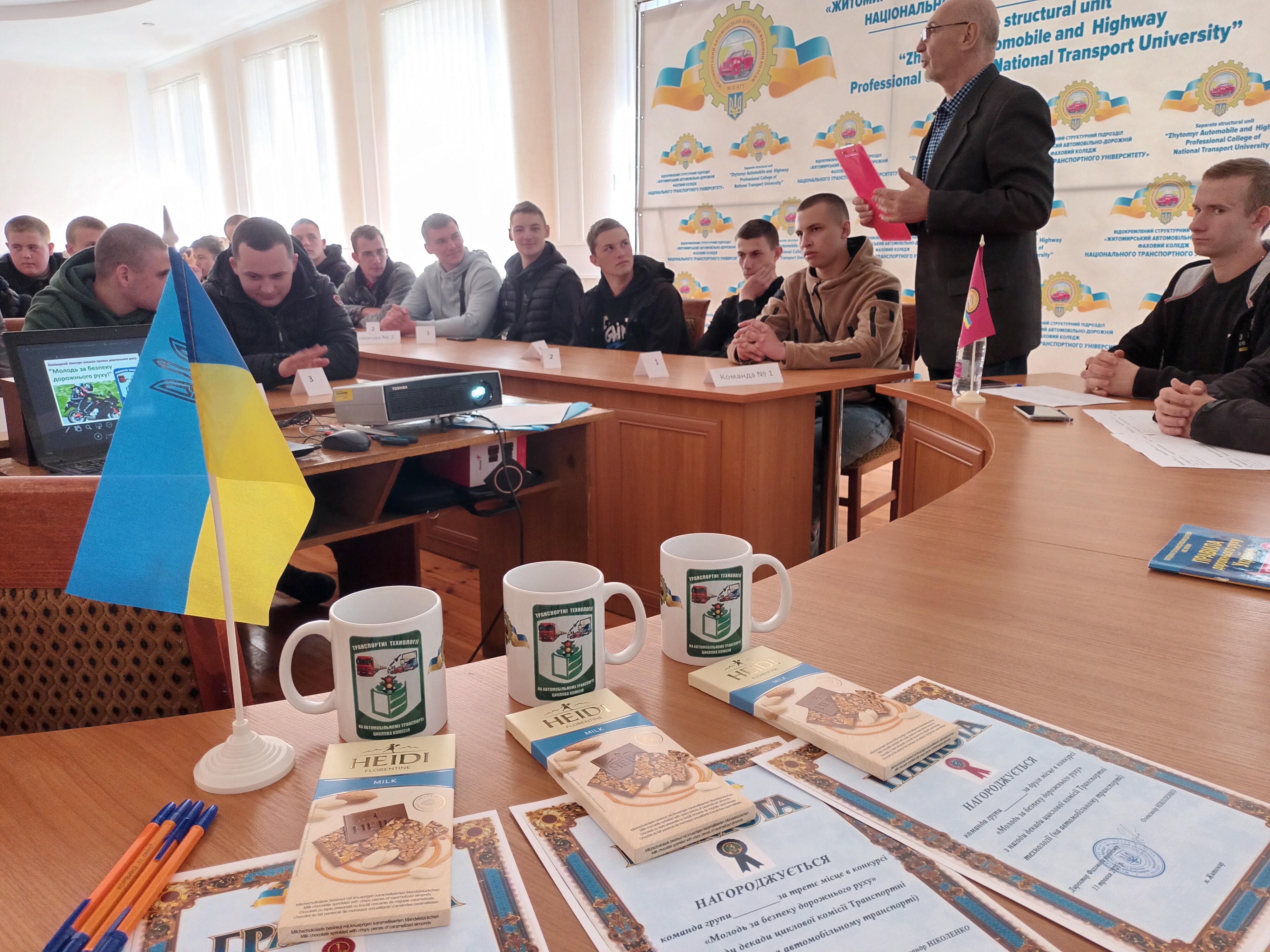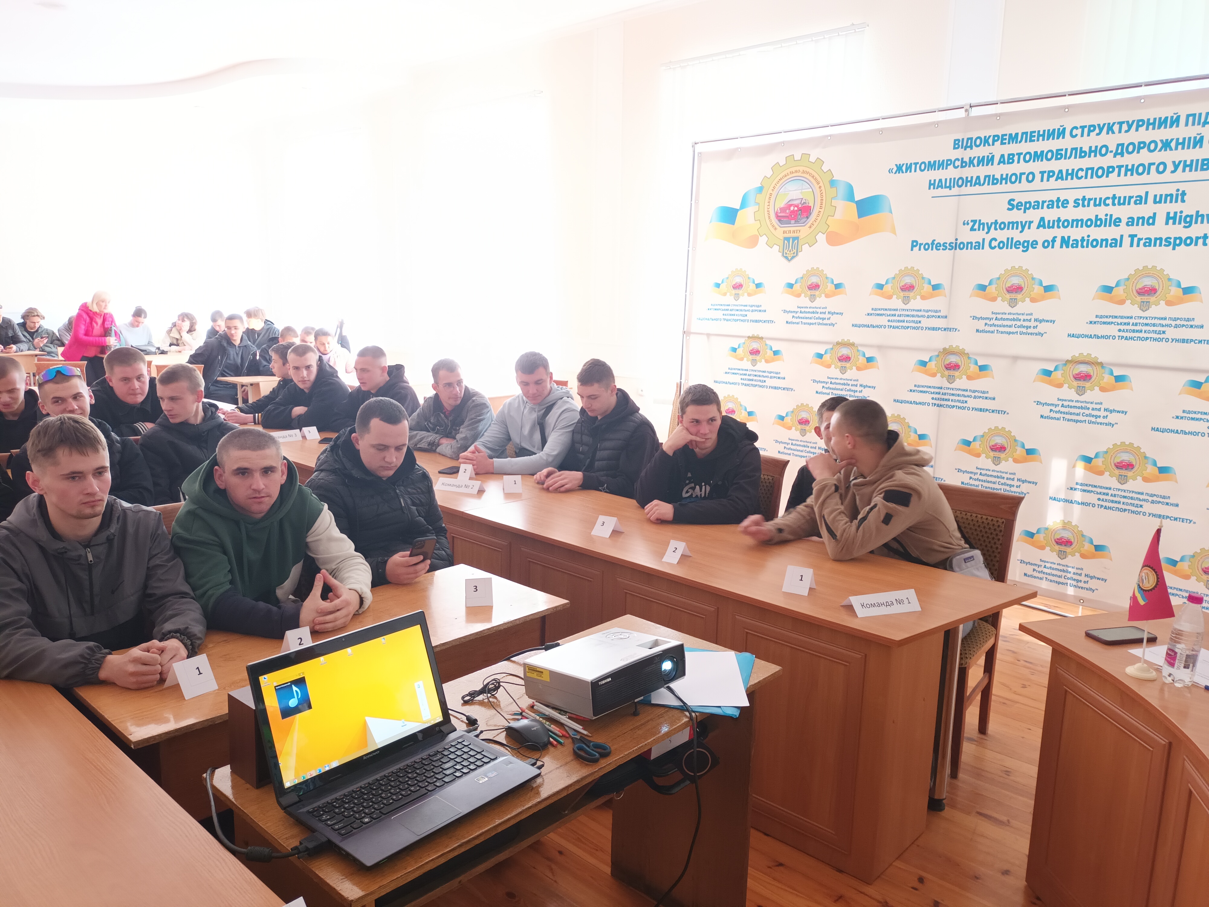 Так, 13 травня 2025 року для студентів коледжу був проведений конкурс знавців правил дорожнього руху під назвою «Молодь за безпеку дорожнього руху», на якому приймали участь 9 команд по три студента з групи (відповідальний викладач - Сергій ГЕРАСИМОВ). Учасники конкурсу проявили неабияку креативність при розв’язуванні дорожніх ситуацій і знання нормативних вимог дорожнього руху. На конкурс був запрошений завідувач кафедри автомобілів і транспортних технологій Державного університету «Житомирська політехніка» к.т.н., доцент Володимир ШУМЛЯКІВСЬКИЙ, який у вітальному слові навів основні фактори аварійності в галузі і напрямки безпечної поведінки серед молоді. У командному заліку перше місце зайняла група 2Рс-1147, друге місце команда групи 3Р-1129 і третє-команда групи 3М-1126. Вітаємо переможців!
