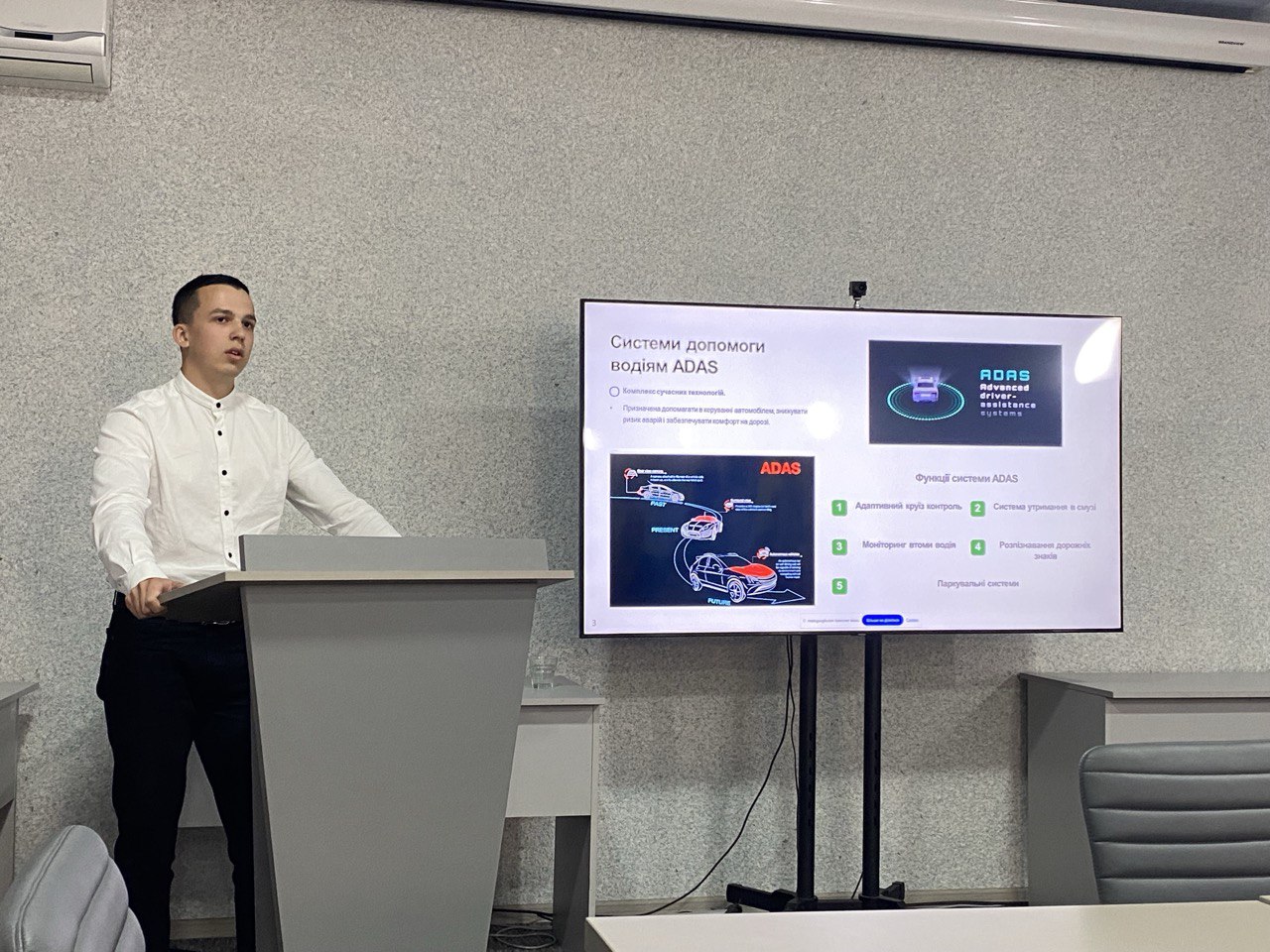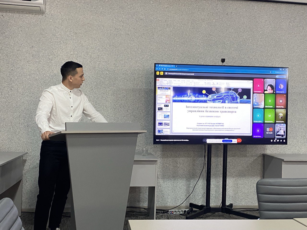 14 травня студент групи 4ТТ-1107 Богдан ЧЕТВЕРТАК на Всеукраїнській науково-практичній конференції здобувачів вищої освіти і молодих вчених «Перспективи розвитку машинобудівної інженерії та транспортних технологій (присвяченій Дню науки), яка проходила в Державному університеті «Житомирська політехніка» виступив з доповіддю на тематику інтелектуальних технологій в системі безпеки транспорту.