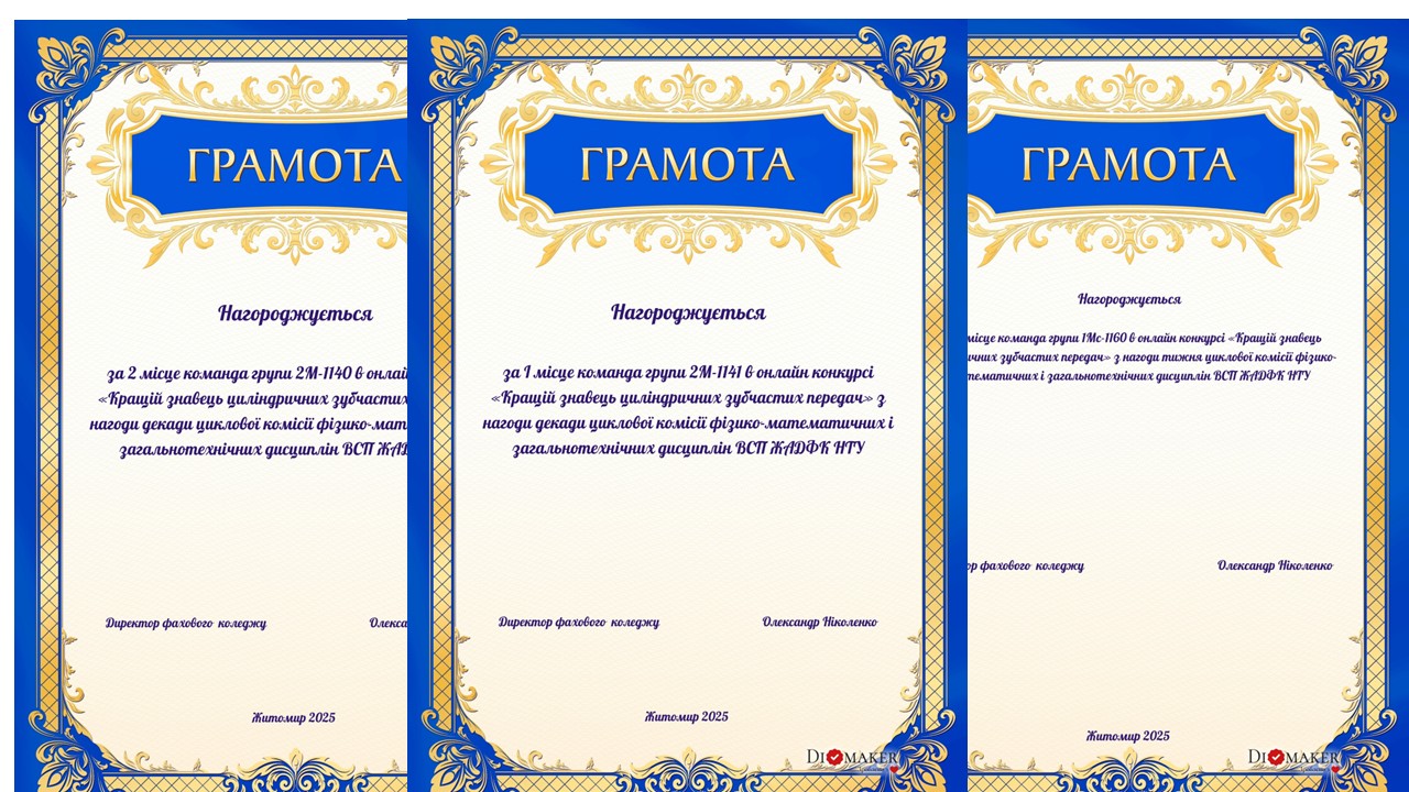 Підведено підсумки онлайн конкурсу «Кращий знавець циліндричних зубчастих передач» що традиційно проводиться серед студентів другого курсу для груп на базі 9 класів та першого курсу групи на базі середньої освіти.