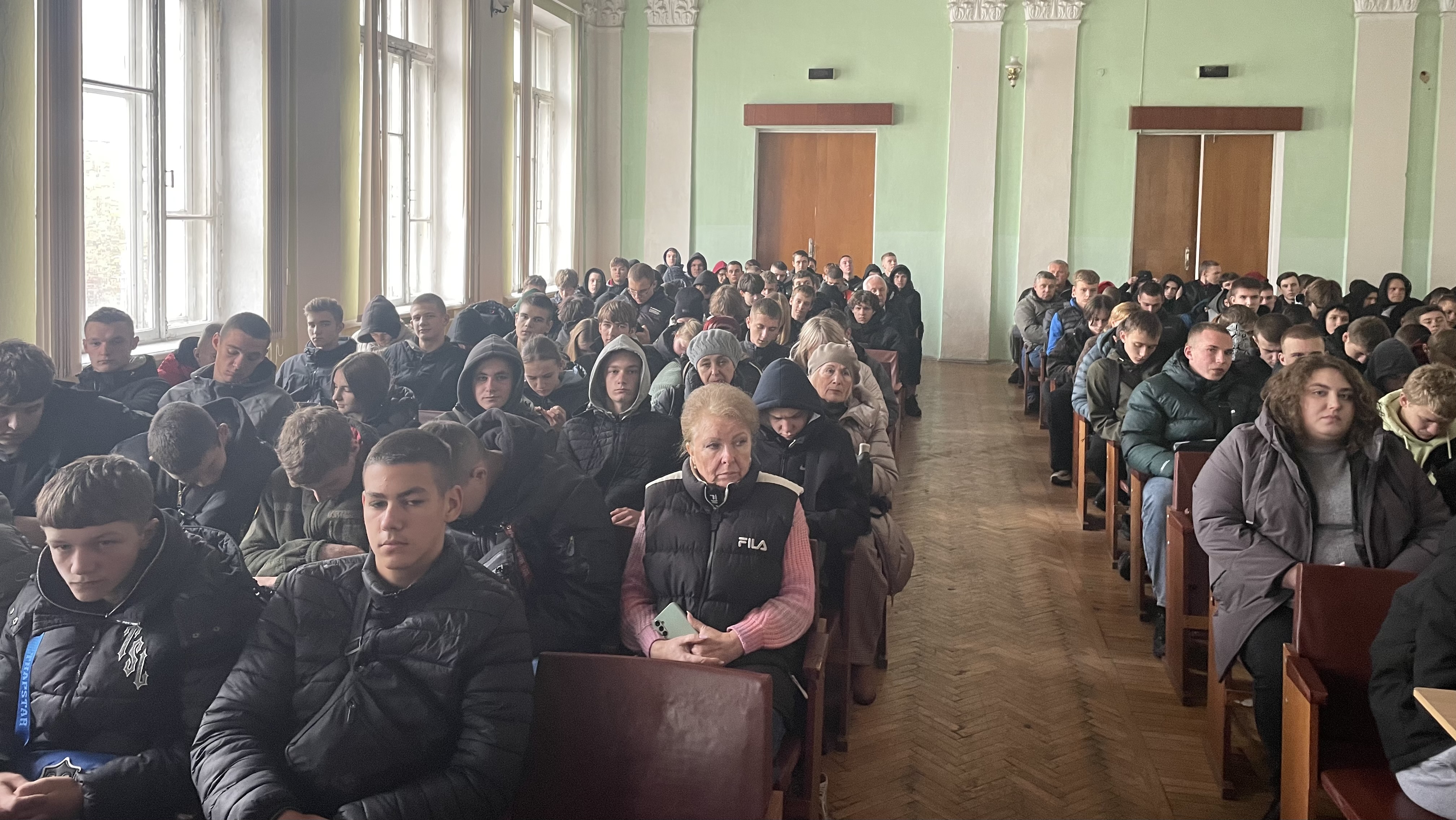 У нашому коледжі 21 жовтня відбулася зустріч адміністрації з першокурсниками. У заході взяли участь директор Олександр НІКОЛЕНКО, методисти коледжу Валентина КУЧЕРИНА та Ніна КЛІМЕНЧУК, керівник фізичного виховання Олександр ГРИНЧУК, завідувачі відділень Андрій КІЛІМІНСЬКИЙ та Олена КОРНІЙЧУК, практичний психолог Ліна РАФАЛЬСЬКА, голова студентського профкому Олександр КОГУТ, відповідальний секретар приймальної комісії Ольга БЕЛЯНІНА, класні керівники груп, а також співробітники гуртожитків і медпункту.