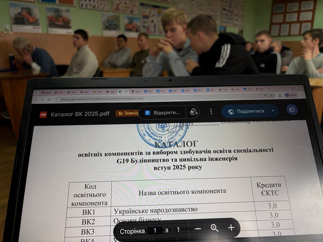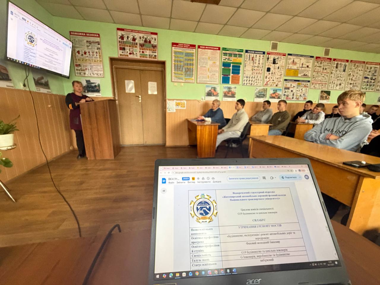 2. Презентація блоків вибіркових дисциплін: Голова та викладачі циклової комісії представили Каталог вибіркових дисциплін, який пропонується освітньо-професійною програмою (ОПП) спеціальності G19 та провели презентаційні заходи, щоб забезпечити принцип конкретності при виборі. Студенти отримали можливість поставити запитання та отримати консультації щодо формування власної освітньої траєкторії, що відповідатиме їхнім професійним інтересам у сфері дорожнього будівництва.